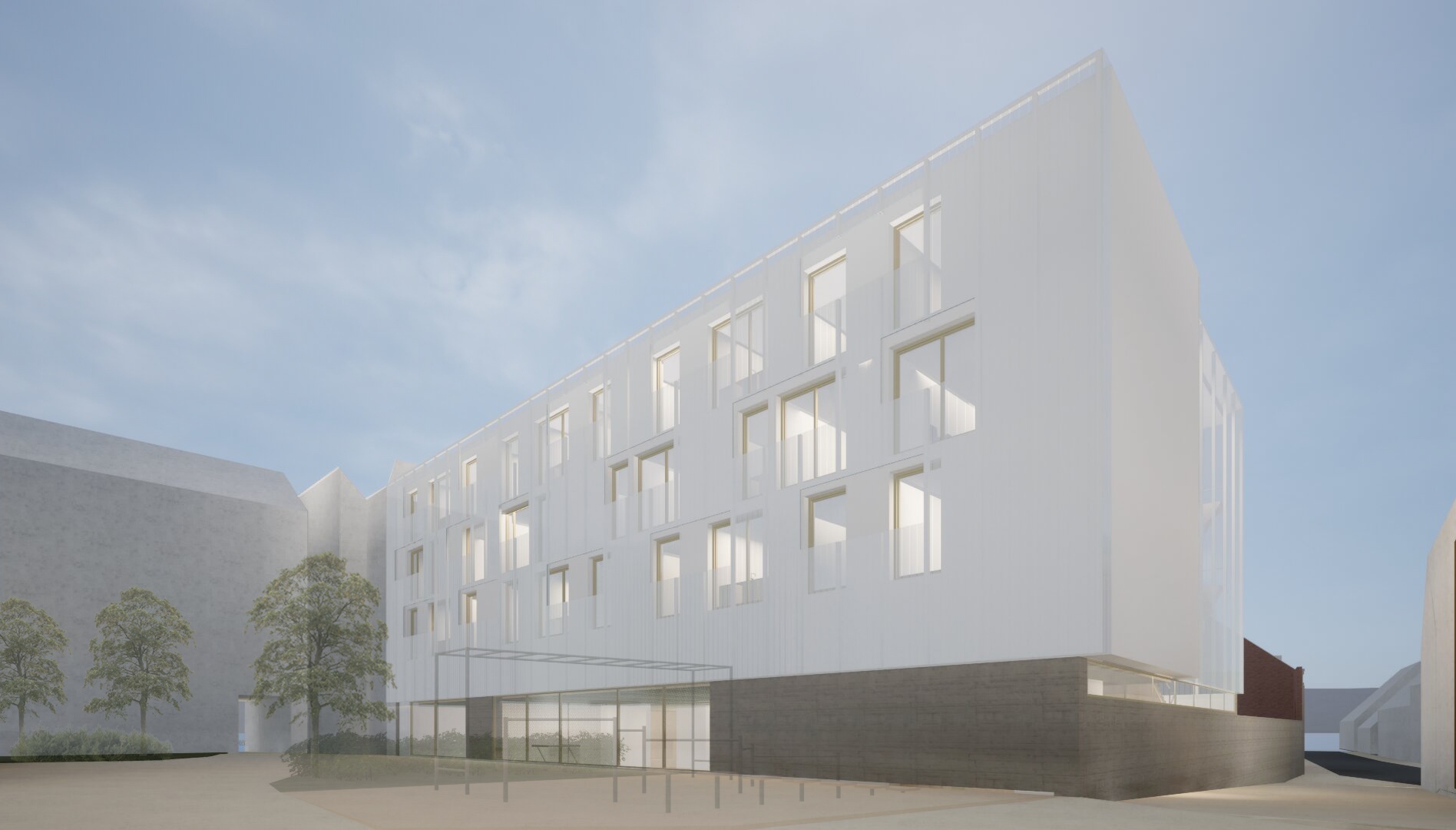 A kollégium épülete ad szálláshelyet a diákoknak, a két tömeg közötti összeköttetést a kert és a növényzet jelenti, ez formálja a belső tér hangulatát is. Egy áteresztő hártyán keresztül szivároghatnak be a kollégiumba, mely a homlokzaton és a bevilágító fénykutakon is megjelenik. A bejárati zóna egy élettel teli fedett-nyitott tér, mely a központi multifunkcionális közösségi térrel áll kapcsolatban. A földszint többféle használati minőségét a mozgatható podest, és a sínes mobilfalrendszer biztosítja, így rendezvény esetén leválasztható a tornaterem, amely a térszintkülönbséget kihasználva lesüllyesztve jelenik meg.