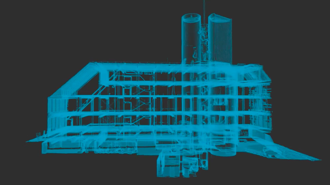 „A röntgen vizualizáció az épület szerkezeti vázáról készült, a hosszanti homlokzatok levágásával – írta a MÉSZ Facebook-oldala. – A 3D mesh 95 lézerszkennelt pontfelhő regisztrálása után generáltuk.”