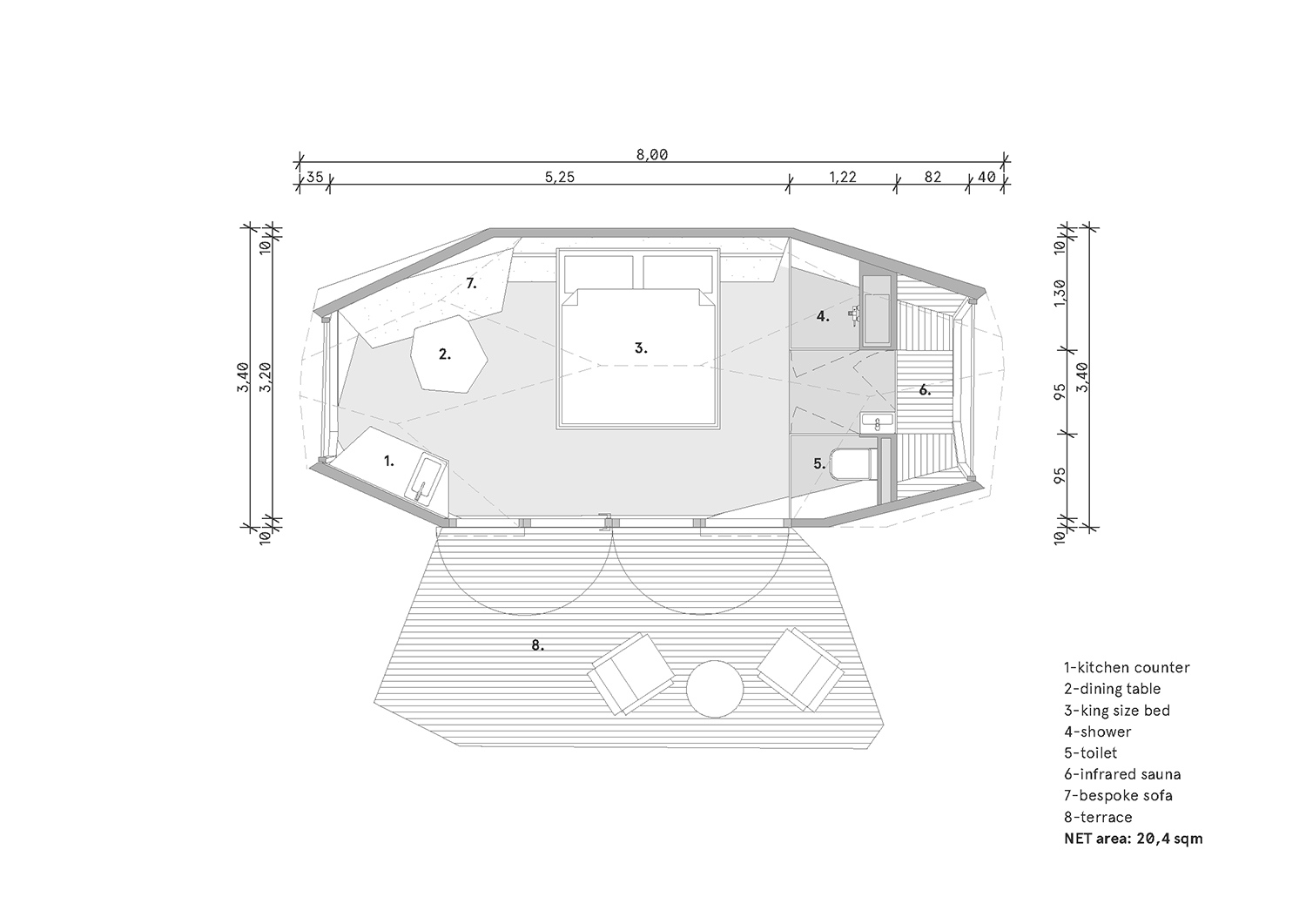 A kabinok funkcionalitásukban és anyaghasználatukban is személyre szabhatók, maximálisan igazodva a megrendelői igényekhez. Kompakt mérete ellenére teljes értékű élményt nyújt, egy ötcsillagos, kétszemélyes szállodai lakosztály kényelmét és minőségét kínálva, beleértve a king-size méretű ágyat, étkezőt, konyhát, fürdőszobát, panorámás infraszaunát és a hatalmas üvegfelületeket. Ráadásul mérete igény szerint bővíthető további PEBL-egységekkel, térkialakítása tehát rugalmasan alakítható. Ezek a különleges formájú, szoborszerű land art objektumok forgathatók és áthelyezhetők, ahol minden nézőpontból más és más arcukat mutatják. Használat szempontjából lehetőségeik pedig szinte végtelenek: lehet egy fesztivál pihenőhelye, meditációs stúdió, kreatív munkatér, exkluzív vendégszoba vagy akár privát szauna.