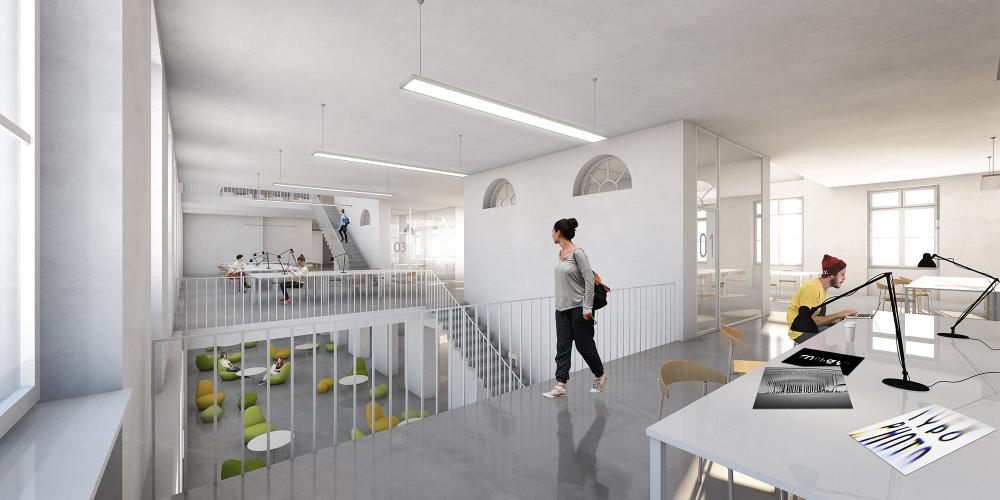 A formális és informális tanulás tereit egybemostuk. A hátrányosnak tűnő és a jó helyzetű tereket összekötöttük, ezáltal pulzáló térfolyamot hoztunk létre, ahol a tevékenységek kevéssé helyhez kötöttek, sokkal inkább szituatív alakulnak. Az átmeneti, közlekedő terek bekapcsolódnak a MOME vérkeringésébe, a terek tágulnak és szűkülnek.