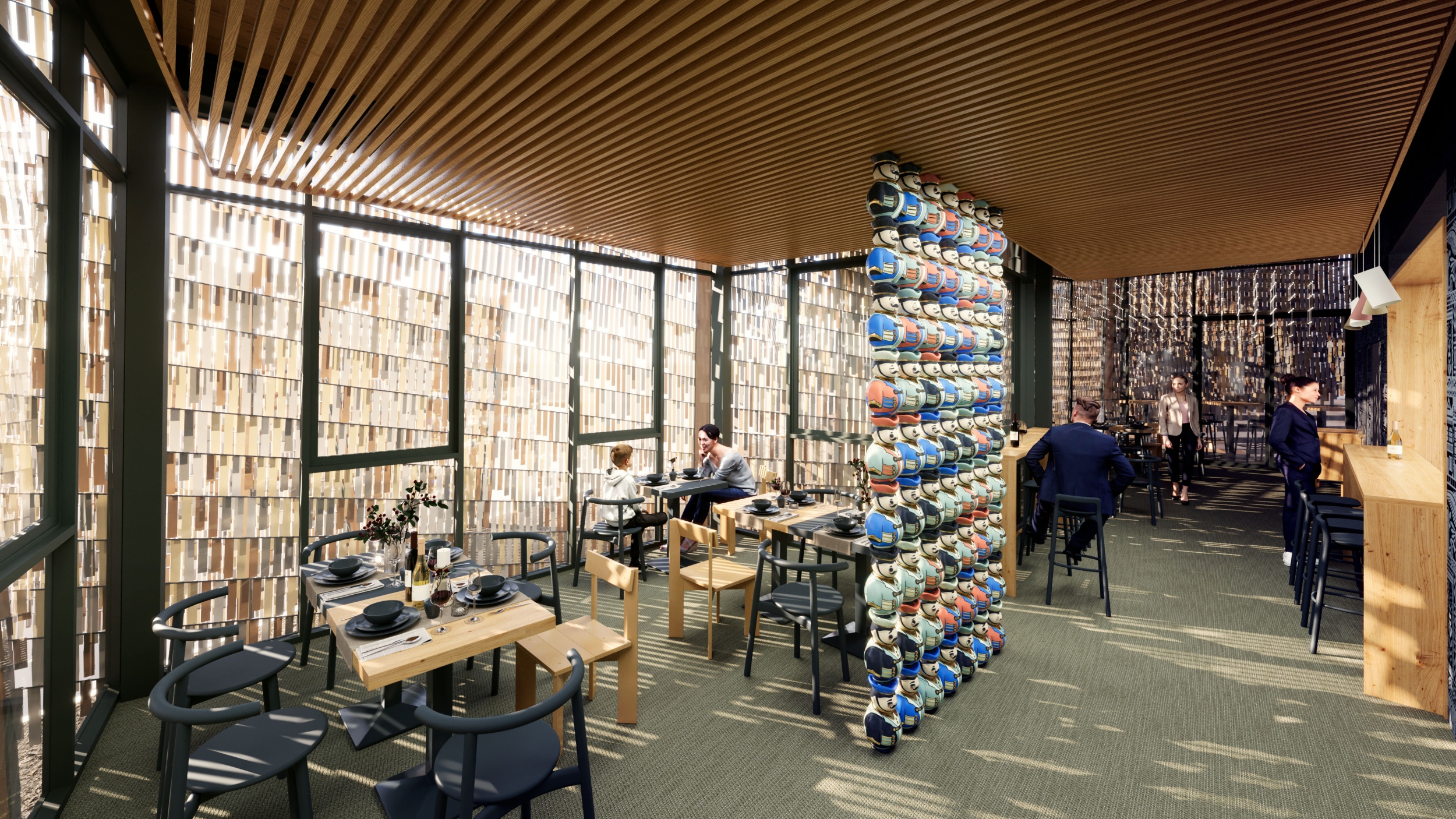 Ezen a tökéletes és rendíthetetlen alapzaton áll a ZDA, a Zoboki Építész Iroda tervezte magyar pavilon. A kárpát-medencei településképre nagyon jellemző, ún. fésűs beépítési mód a japán népi építészetben is fellelhető forma, erre és a kép nép között még jó néhány, eddig csak részben feltárt kapcsolódásra épít Zoboki Gábor vezető tervezőnek és alkotótársainak pavilon-koncepciója. Az erdő, a mező és a föld művelésének keserűen egyszerű, ugyanakkor bámulatosan színes és titokzatos folyamatairól a népdalok árulnak el a legtöbbet. Születés, halál, szerelem, tragédia, öröm és bánat… mind-mind benne foglaltatnak ebben a mélységesen mély értelmű, az évezredes tapasztalatok átadásának szentelt kommunikációban. Olyan információsodor ez, amelyet generációk százai írtak a sorsukkal, és – tetszik, nem tetszik – még akkor is összeköt, ha tudomást sem veszünk róla.