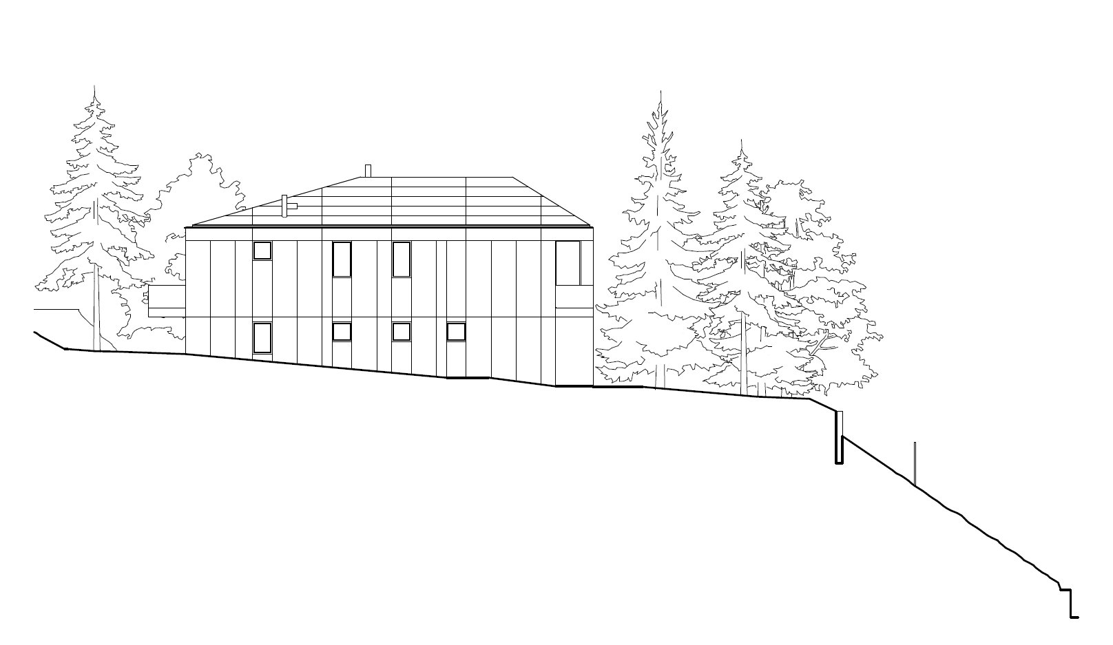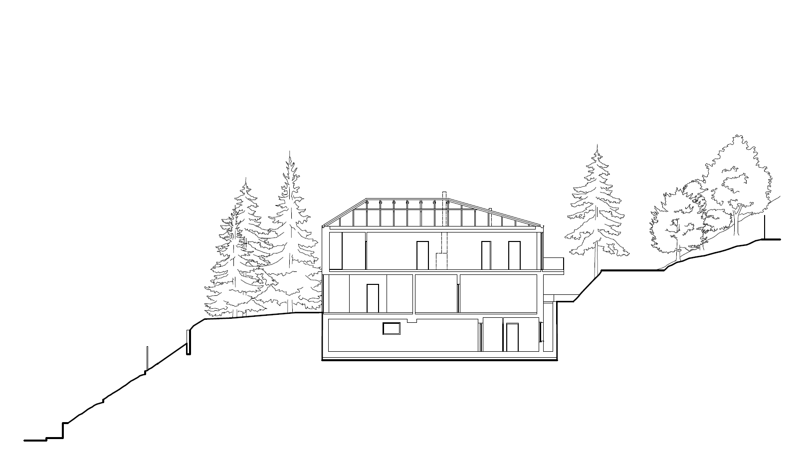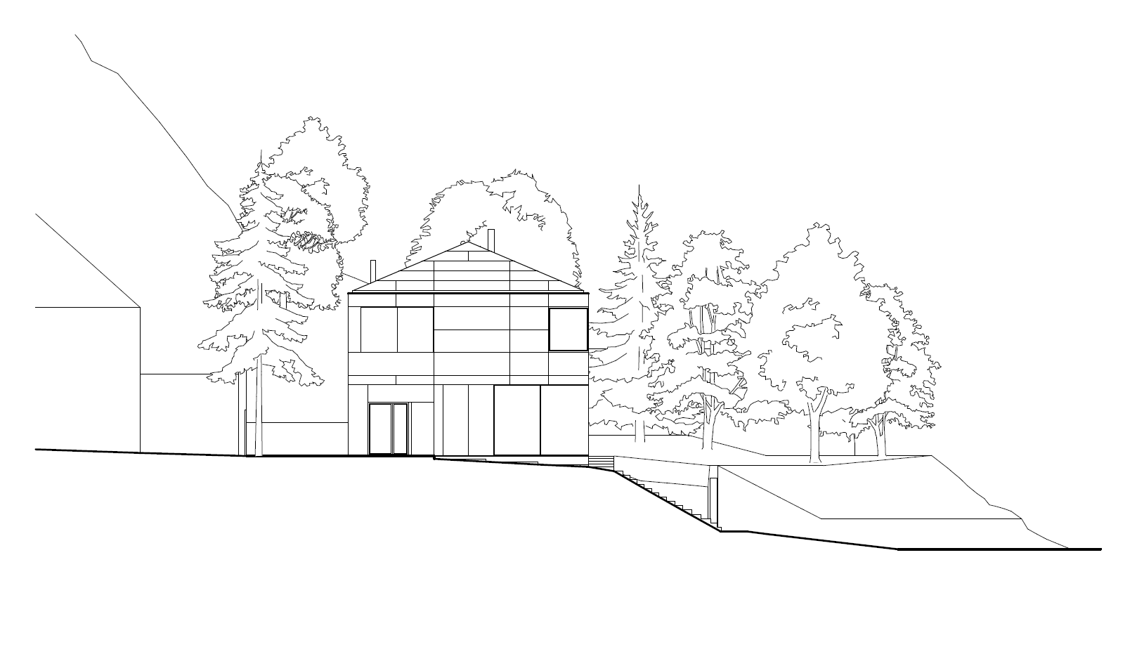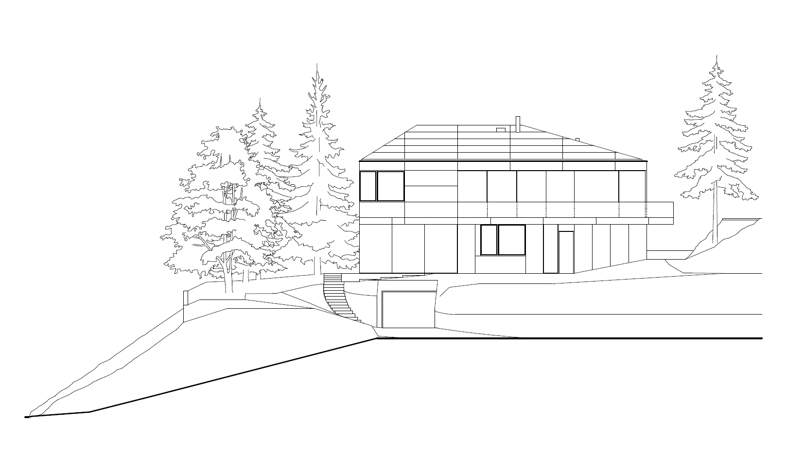 Feltűnőek még a nagy üvegfelületek, amelyekkel inkább hozzáadtak a térhez, mint elvettek belőle. Az üveg-üveg sarok nagyon filigránná, nyitottá teszi az épületet, fokozza az átláthatóságot. A nagy üvegfelületeket kihúzták homlokzatsíkra, hogy még tömörebb, még kompaktabb legyen az épület. A meredek terep egyszerű, részleteiben, összhatásában mégis rafinált megoldásokra adott lehetőséget, miközben teljesül a legfőbb célkitűzés, ízesülni a terepbe.