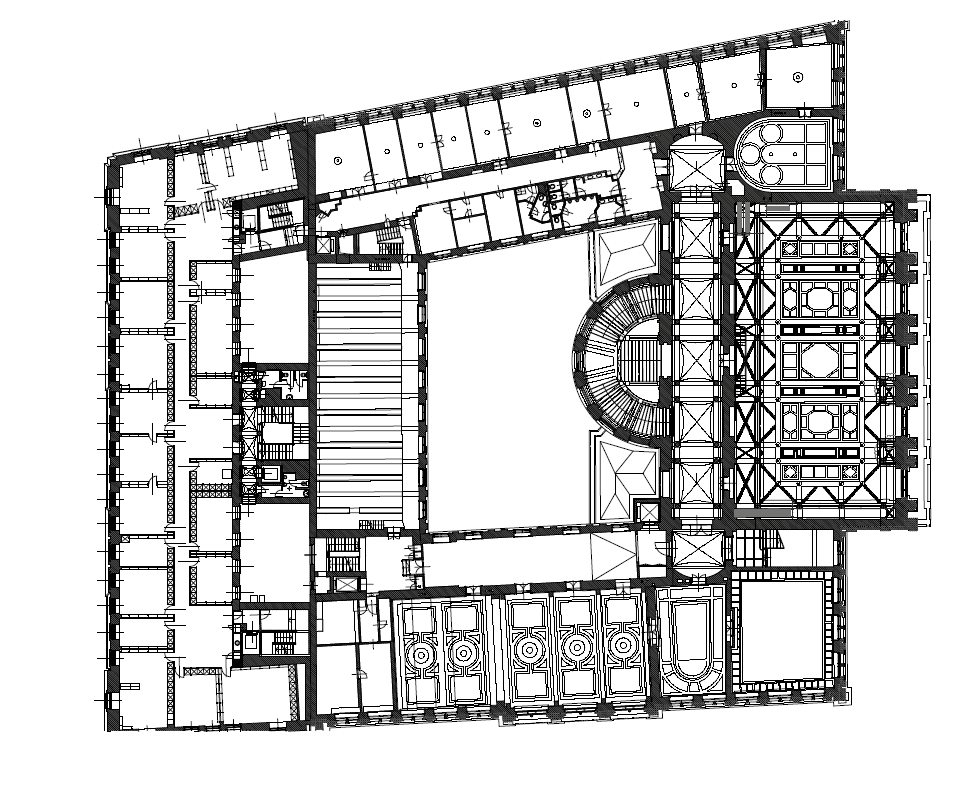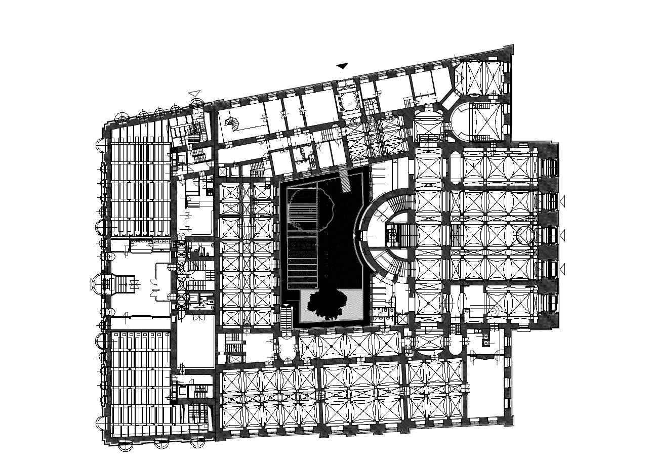 Az elöregedett szerkezetek és beázásra hajlamos tetőrészek cseréje, kiigazítása ugyanis építészeti szempontból nem túl látványos, de annál fontosabb és érzékenyebb feladatok egy ilyen korú épület esetében. A reprezentatív terek megtisztítása, a hulladékterek leleményes kihasználása mind-mind csak úgy kivihető, ha a teljes komplexumra érvényes elvekhez illeszkedik. Nem beszélve a szerkezeti kiigazításokról: a felmérések alapján volt olyan falrész, amelyre a korábbi átalakítások következtében 200%-os terhelés jutott.