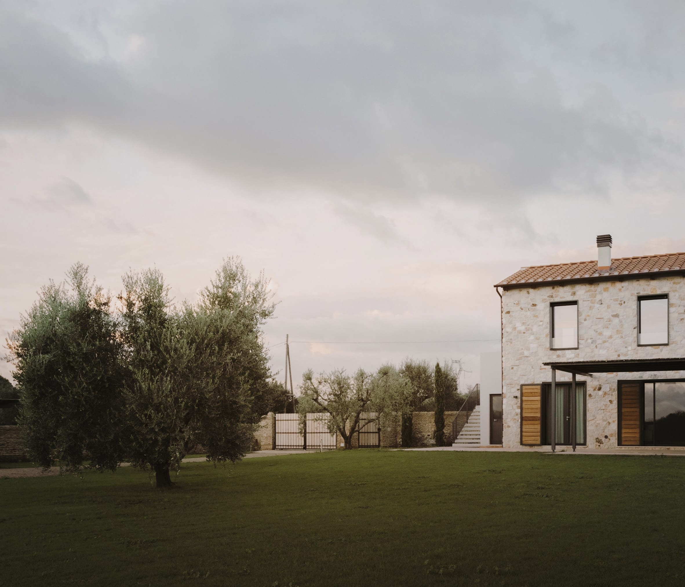 A Casamanda toszkán farmházat Carlo Pantanella D’Ettorre és Valeria Presicci építészek tervezték. A tervezőpáros jellemzően vidéki magánházak tervezésével foglalkozik. A nyugalmat árasztó orbetellói épület kívül egyszerű kőburkolatával, belül letisztult vonalaival tárja elénk a minimalizmus alapvetéseit. A kétszintes otthon formavilága, anyag- és színpalettája jellegzetes toszkán jegyeket hordoz.
