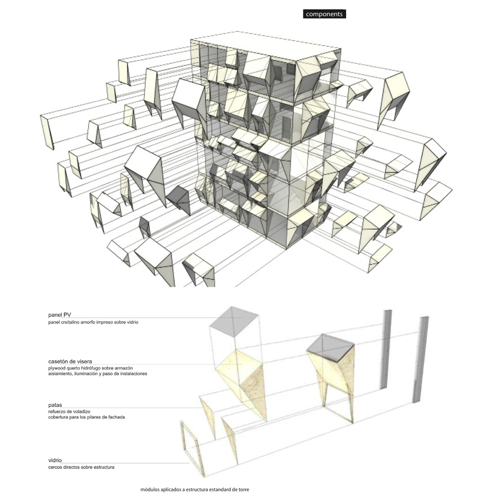 A pavilon egyben a moduláris építés prototípusa is. Az épület napelemes egységekből felépülő héja több funkciót lát el az energiafelvételtől a napvédelmen át a szigetelésig, szellőzésig és világításig. Ugyanez a logika igazítja a homlokzati geometriát az épület minden pontján a specifikus környezeti követelményekhez.