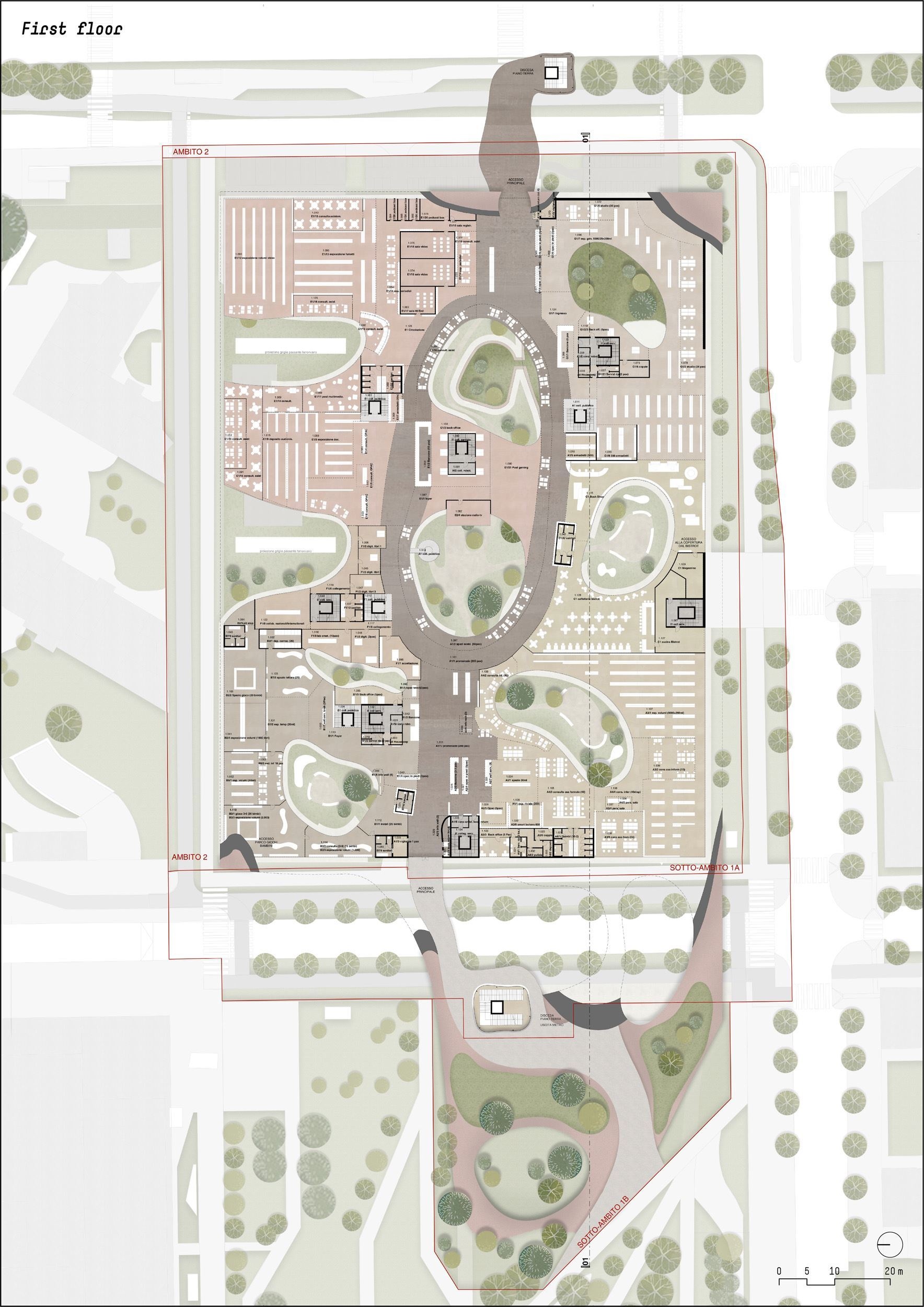 „A tudás fája” épülete összesen kilenc szintes. A fő szint az első emelet, ahol egy kanyargó promenád vezeti végig a látogatót a teljes épületen. A belső sétány hangulatos, gazdag programot kínál. Az enteriőr világa minden szinten, az épületből kilépve is, megszakítás nélkül folytatódik. A legfelső szintre egy könyvtoronyban lévő különleges, automatikusan felemelkedő lifttel juthatunk fel, ahol a létesítményt a 200 férőhelyes, körkörös előadótér 360 fokos milánói panorámával határolja.