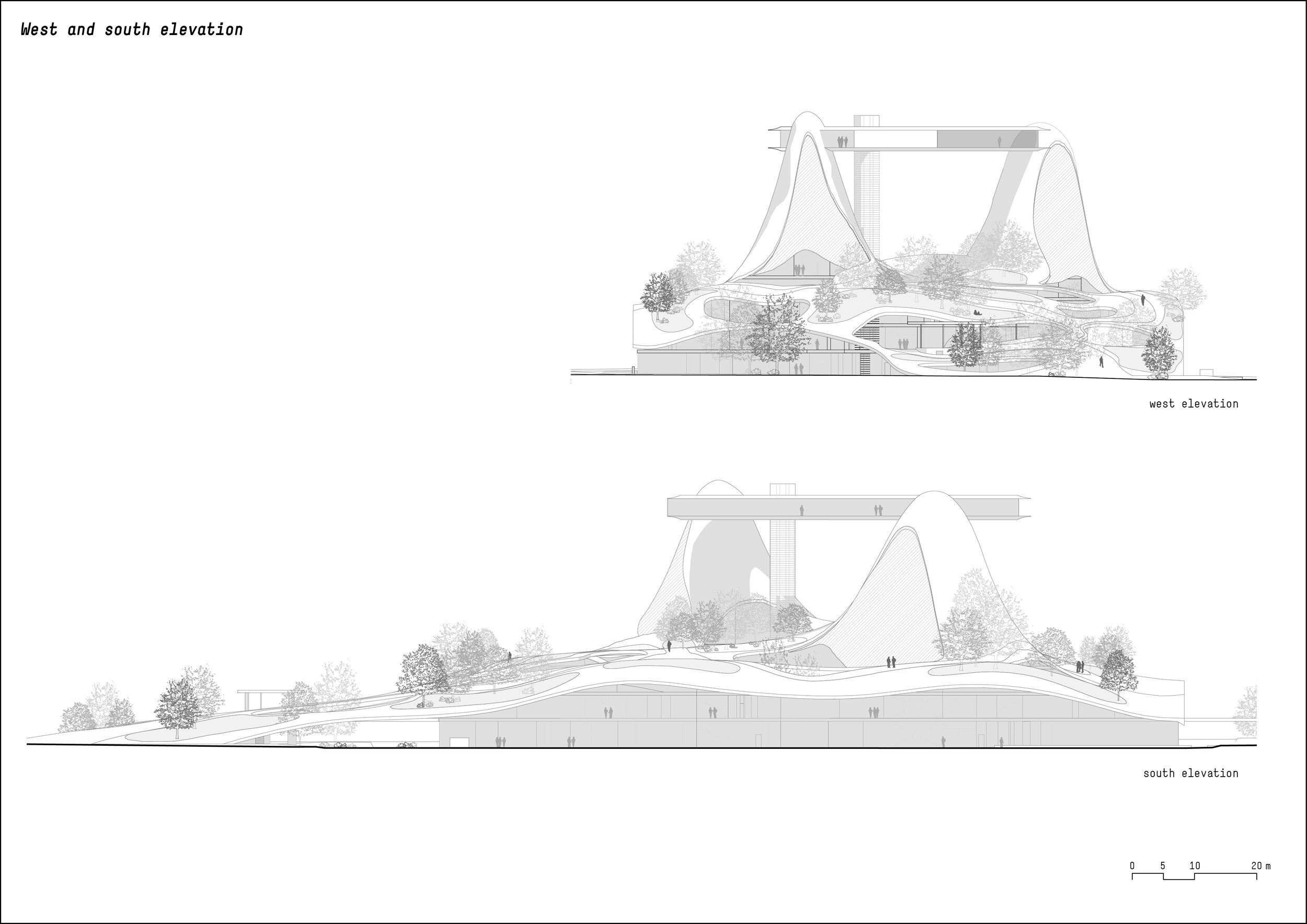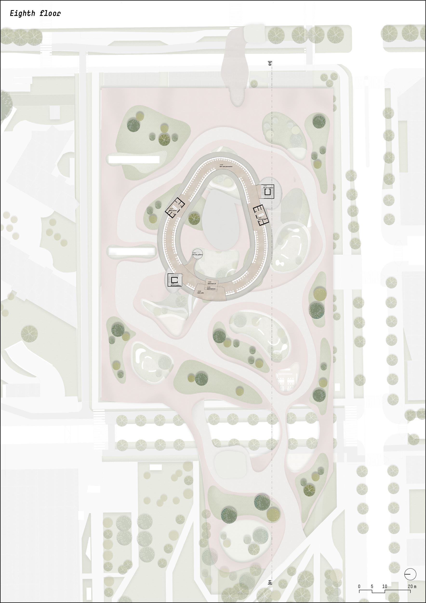 A „könyvlétra” egész élménye olyan, mintha egy fára másznánk fel egy buja kert végében. Az érzés nem is olyan csalóka: az építészeket az Édenkert világa ihlette a tervezés során, ahol a Jó és a Rossz tudás fája nő. A BEIC tetején a noa* egy földi Édent teremt újjá, ahol az ismeretlen világok felé forduló ember számára a tudás ünnepelt szépség és folyamatos ösztönzés is egyben.