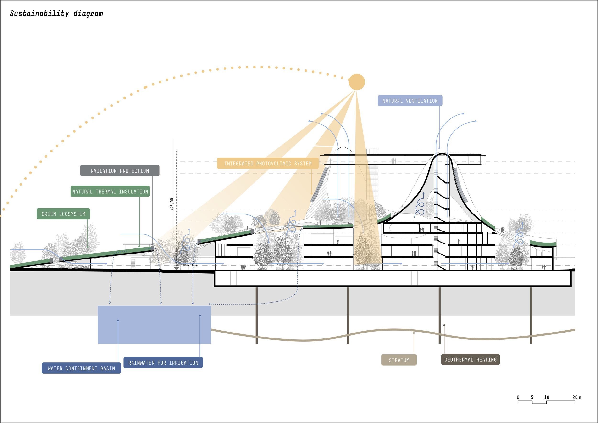 A noa* a projekt-előkészítés részeként határozta meg azokat a sarokpontokat, melyek megvalósítása elengedhetetlen egy 21. századi könyvtár tervezésekor. A stúdió csapata így a kreativitás ihletet adó csomópontjaként és az új ismeretek megszerzéséhez szükséges ösztönző közegeként képzelte el, formálta meg a létesítményt. A bonyolult építészeti szerkezetet a BEIC védjegyeként az átható természeti táj és a virágzó tetőkert fogja egységbe.