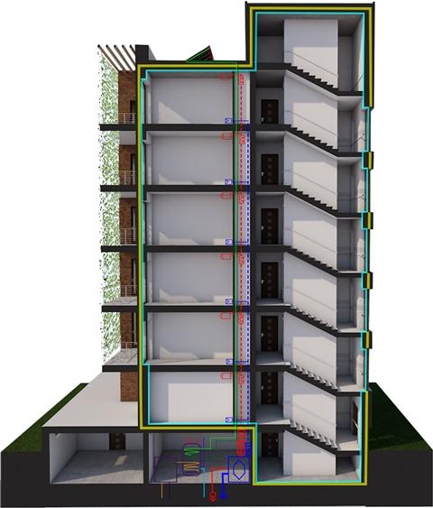 Az alkotók az épületet, mint térben elhelyezkedő testet vizsgálták, amit egyenetlen mértékű külső hatások érnek. Éppen ezért, az egyenletes belső működés érdekében egy olyan kiegyensúlyozott rendszer kiépítésére volt szükség, amelyik képes a külső és belső hatásokat felvenni, kezelni, és egyenletesen szétosztani. Az egyes lakások, amelyek a legkorszerűbb technológiákat ötvözik magukban, egy vezérlőpanelről működtethetők. Ezek a vezérlőpanelek rákapcsolódnak egy olyan szerverre, amely lépcsőházanként kerül kialakításra, így a tömbön belül olyan okos otthonok jönnek létre, melyek képesek együtt működni, mind fizikailag, mind virtuálisan is.