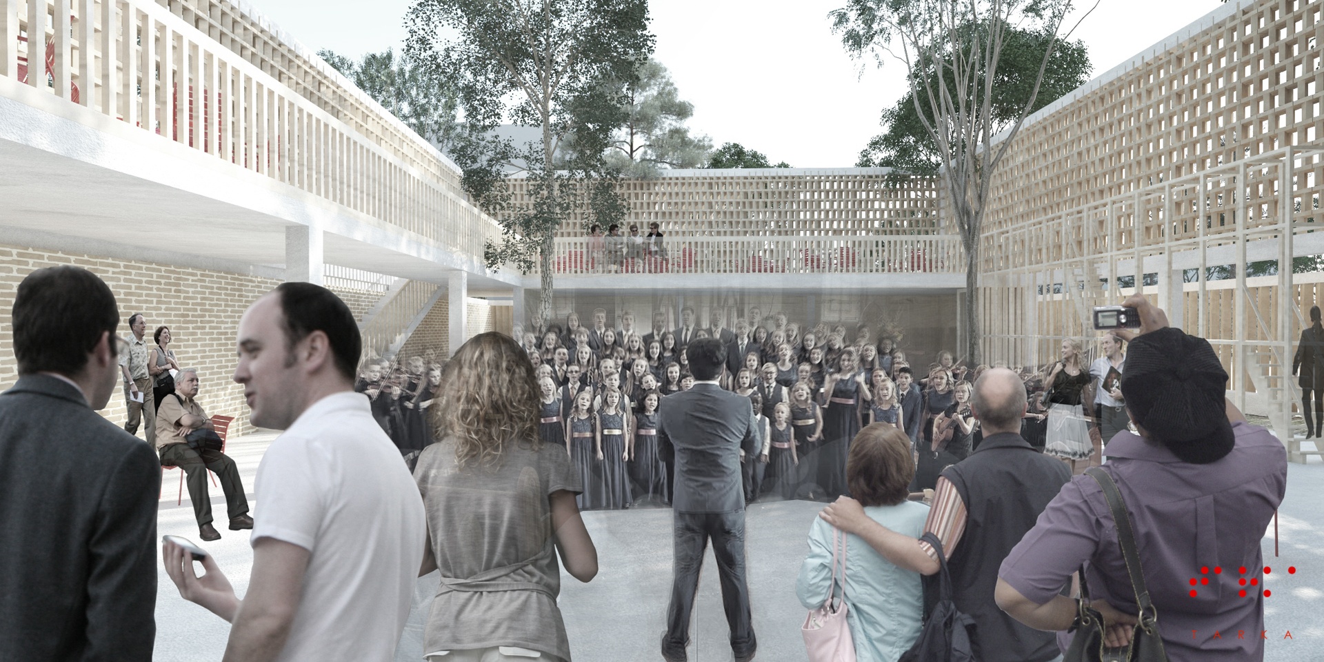 Mi kell ahhoz, hogy egy közösség létrejöjjön? S ahhoz, hogy újra és újra összegyűljön? Egy olyan tér, amely hellyel kínálja a betévedőket, amely marasztalja őket. A TARKA Architects csapata az új pasaréti közösségi ház és plébánia épületének pályázatára egy olyan koncepcióval állt elő, amely a Rimanóczy által megkezdett téri szövetet szövi tovább.