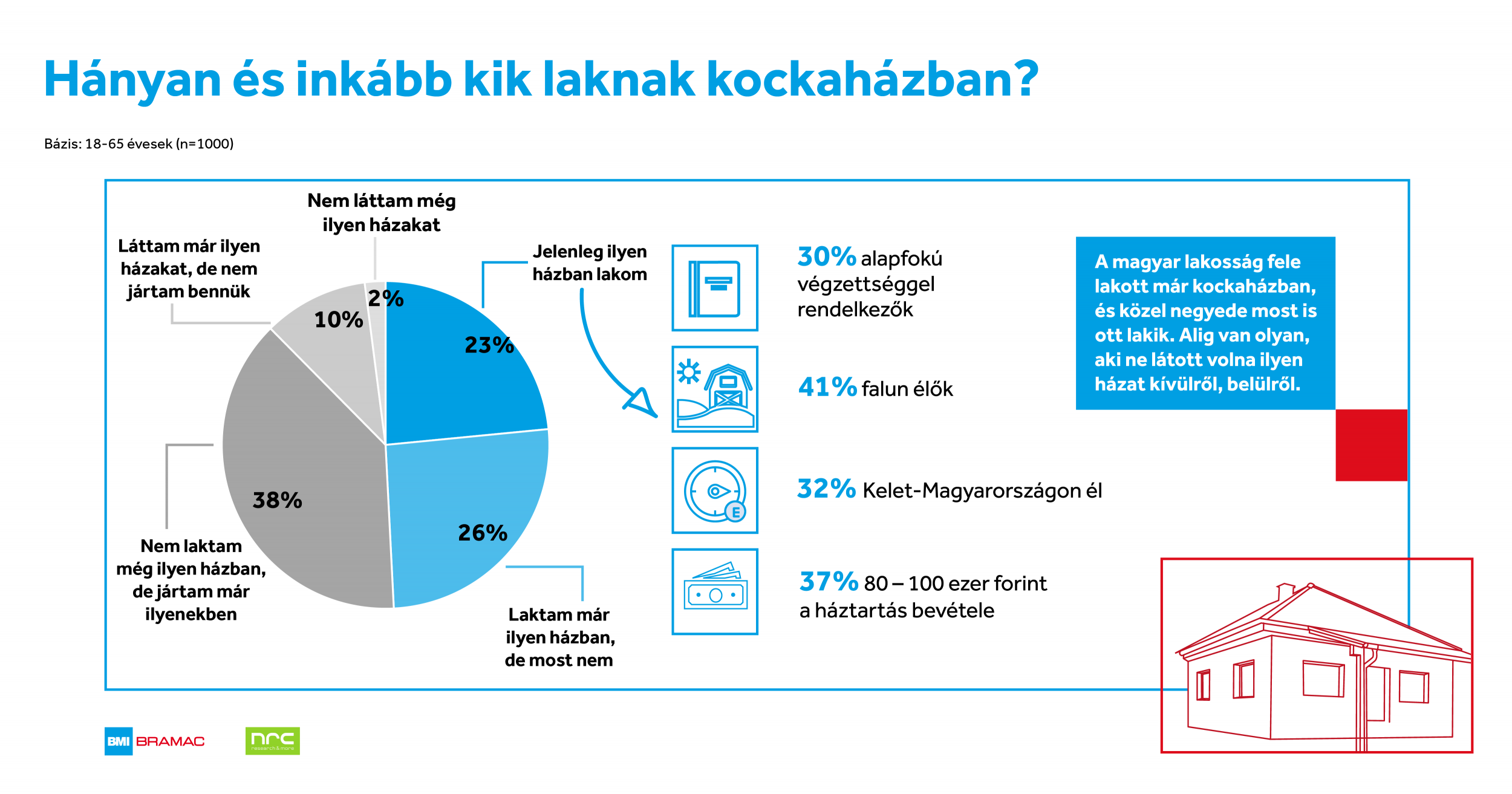 A felmérésben megkérdezettek 23 százaléka lakik jelenleg is kockaházban, és 49 százalék lakott valaha itt, de a lakosság 98 százalékának van valamilyen élménye a háztípussal – például jártak már benne vendégségben.