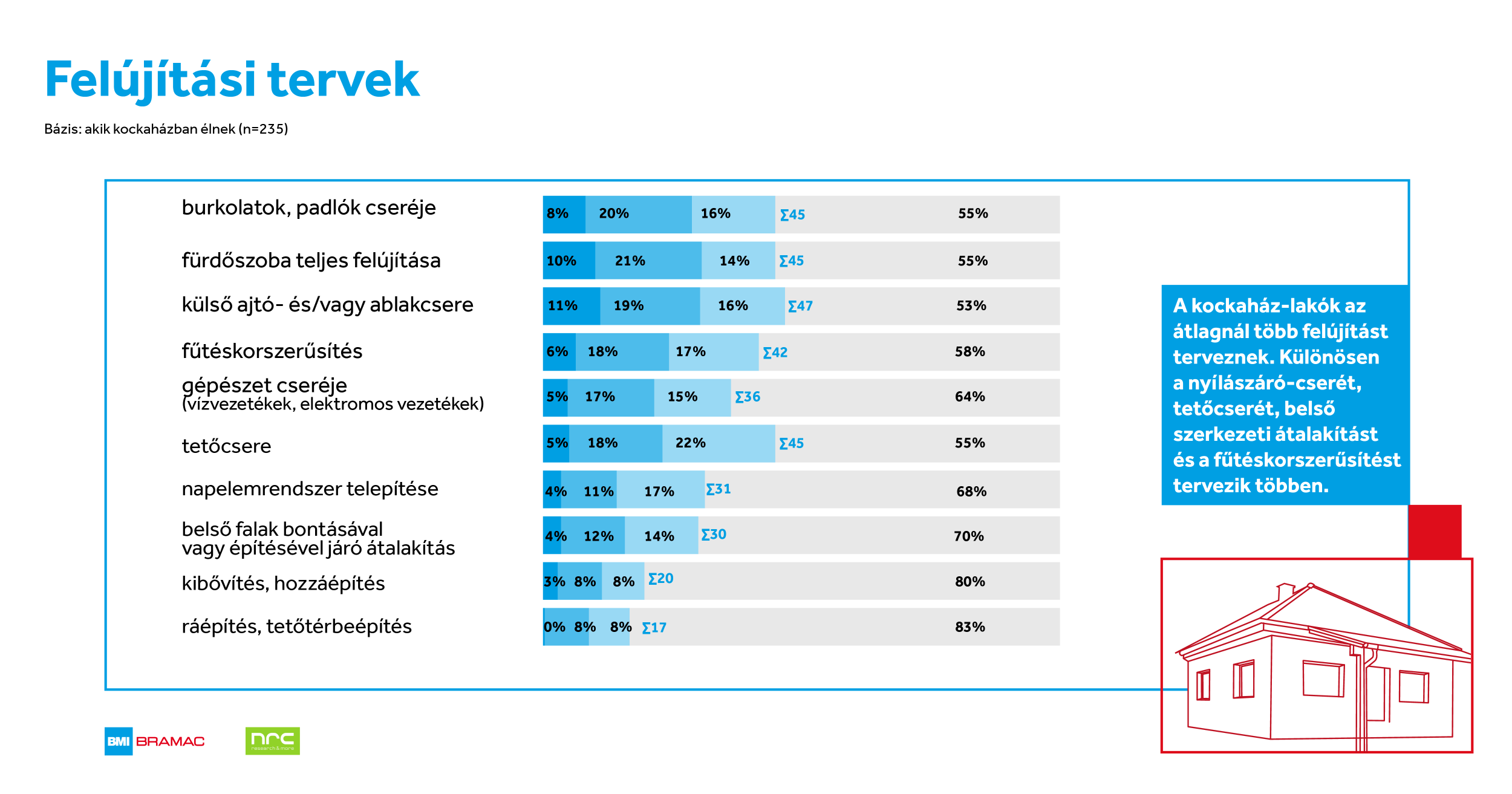 Az esztétikai szempontok mellett a felújítást sokszor a modernizálás motiválja. „Ha energetikai korszerűsítésről van szó, a tető az egyik legfontosabb pontja a háznak, hiszen a legtöbb hő egy rosszul szigetelt tetőn és a födémen keresztül szökhet ki. Nem érdemes a felújítást halogatni, így elkerülhető a ház nem gazdaságos fenntartása vagy nagyobb károk is, amelyek a tető állapotából fakadnak” – hívja fel a figyelmet Viniczai Róbert, a BMI Bramac termékmenedzsere. A tervezést azért is érdemes időben elkezdeni, mivel egy jó minőségű, de alapfelszereltségű tető anyagköltsége, a tetőfedő munkadíja nélkül, akár 1.2-1.4 millió forintba is kerülhet – derül ki a kockahazteto.hu oldal kalkulációiból.