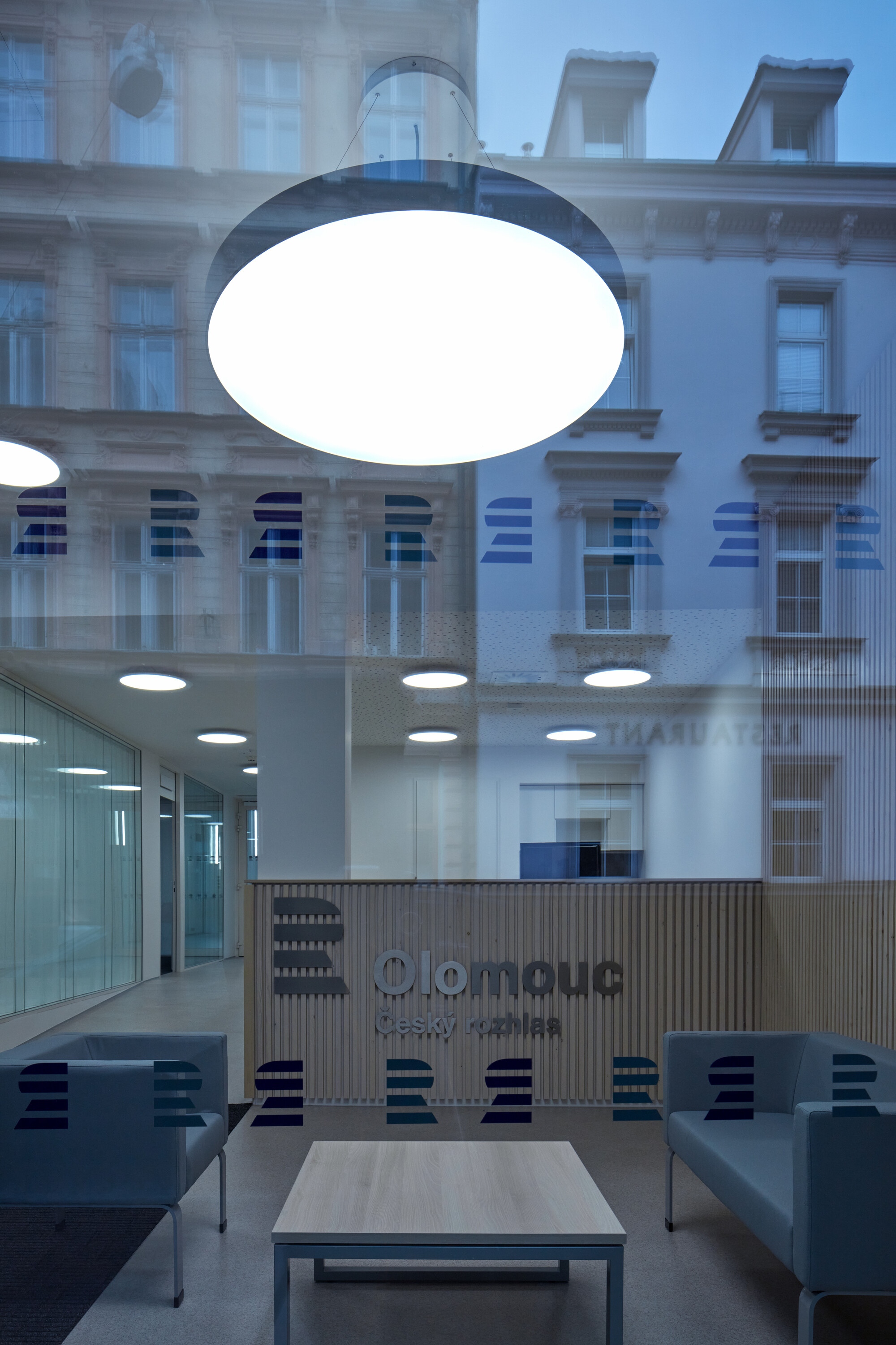 Az Atelier 38 egy karakteres, a 20. század elején bútorkereskedelem céljára épült városi házat alakított át a cseh rádió stúdiói számára Olomucban. Az építése idején szerkezetileg, térformálásában és működésében is újszerű épület sok eredeti értékes részlete esett az idő áldozatául az eltelt száz évben. A mostani rekonstrukció menti a menthetőt.