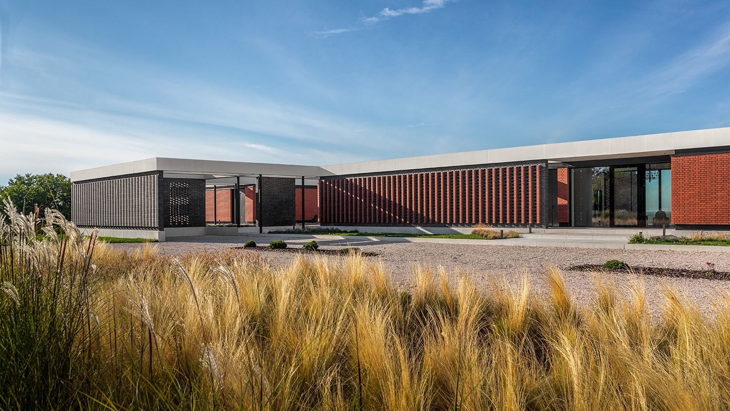 Az egyszerű formaképzést az anyaghasználat helyezi tág dimenzióba. Az építészek ugyanis az egyik legősibb, természetes építőanyaghoz, a téglához nyúltak, amely masszív, homogén felületként, de áttörve, megmozgatva, sőt a perspektívát követő finom játékokkal is sokféle módon gazdagítja az összképet. A klasszikus modern formaadás és a hagyományos megjelenés így talált egymásra ebben a puritán, sallangmentes, ugyanakkor részleteiben rendkívül változatos épületben.