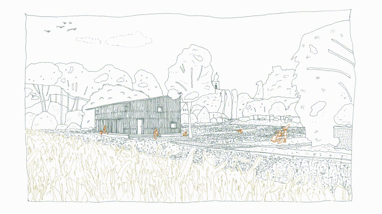 Funkciója vegyes. Az otthonban már most is működő kertészeti program háttér bázisa, és egy új ingereket nyújtó terápiás tér. A belső egy hajlított tér, egy védett tér, ahol feszélyezettség nélkül találkozhatunk sérült emberekkel.