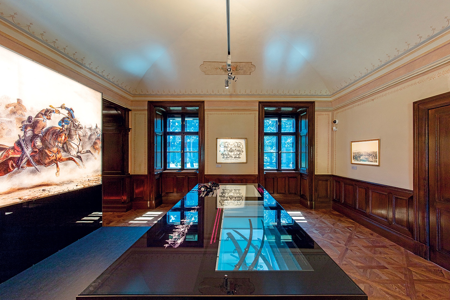 De ahogy a felújítás – a történelmi hűség dacára – mai egységbe fogja össze a kastélyt, a színes-szagos, érzéki kiállítás is magába épít mindent, ami az arisztokraták életén és egy uradalomközpont üzemeltetésén túl az 1849-es, későbbi aradi vértanúk itteni fegyverletételétől egészen Ajtósi Dürerig Gyulához kapcsolható. A ’49-es fegyverletétel idején a szablyák átadásának helyszíne a kastély egyik földszinti szobája volt, ablakán a honvédtisztek állítólag kívülről hajigálták be kardjaikat.