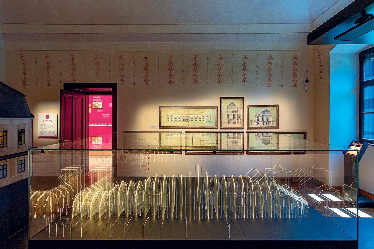 Vagy vegyük például ezt a bizonyos tornyot. Amikor utoljára, a nyolcvanas években – a valahai boltozatokat vasbetonnal pótolva – felújították, lényegében megszűnt klasszikus műemléknek lenni. Most viszont az építészek és a kiállítástervezők valódi kortárs teret teremtettek belőle: többek között a vastraverzek láthatóvá tételével, valamint a fénydesignnal. Tudom, hogy túlzás, de ebben a több mint kétszáz éves toronyban ugyanazt a fényekkel és falfestéssel megsegített, felfelé húzó kürtőhatást éreztem, mint az Sz. Szilágyi-Földes páros egyik korábbi munkájában, a celldömölki Kemenes Vulkánpark szuperminimalista épületében.