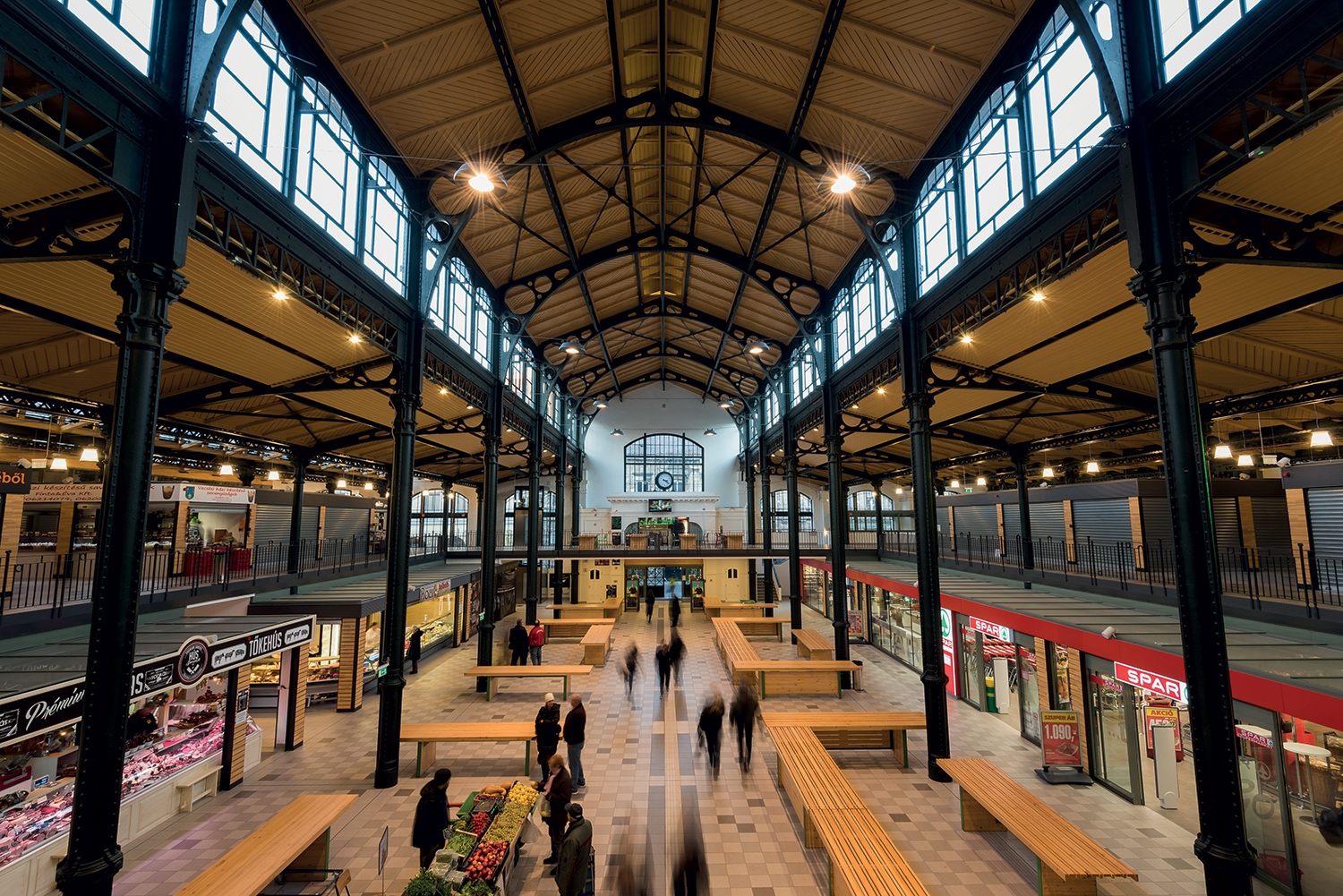 Kun Zoltánék alapos dokumentáció és állapotfelmérés után úgy döntöttek, hogy mindent, ami megőrizhető a régmúltból, azt renoválják vagy rekonstruálják, például a ’87-ben épített galériát lebontották ugyan, de korszerű formában újra galéria épült. A renoválás révén eredeti szépségükben láthatóak mostantól a homlokzatok, a tetőzet, a funkciókijelölést követően pedig, mivel a Spart – a Klauzál tér felől nézve – a csarnoktér bal oldalára pozicionálták, lehetőség nyílt arra, hogy a tér egykori vertikális és horizontális jellege, áttekinthetősége, tágassága ismét főszerepet kapjon.