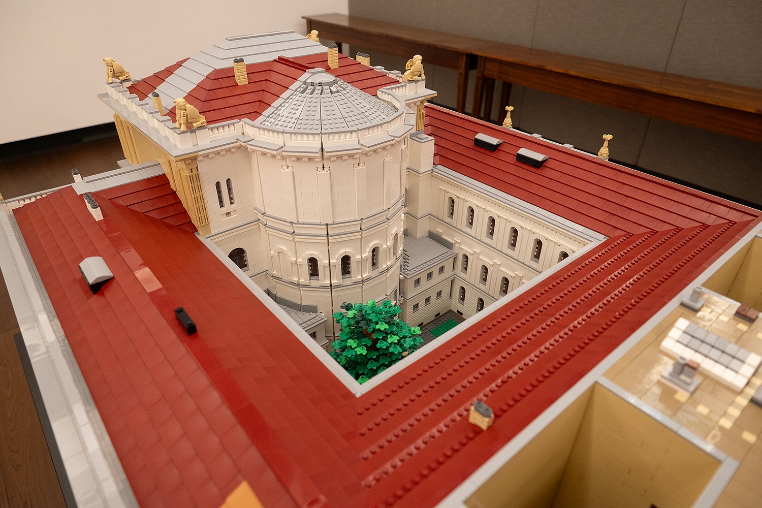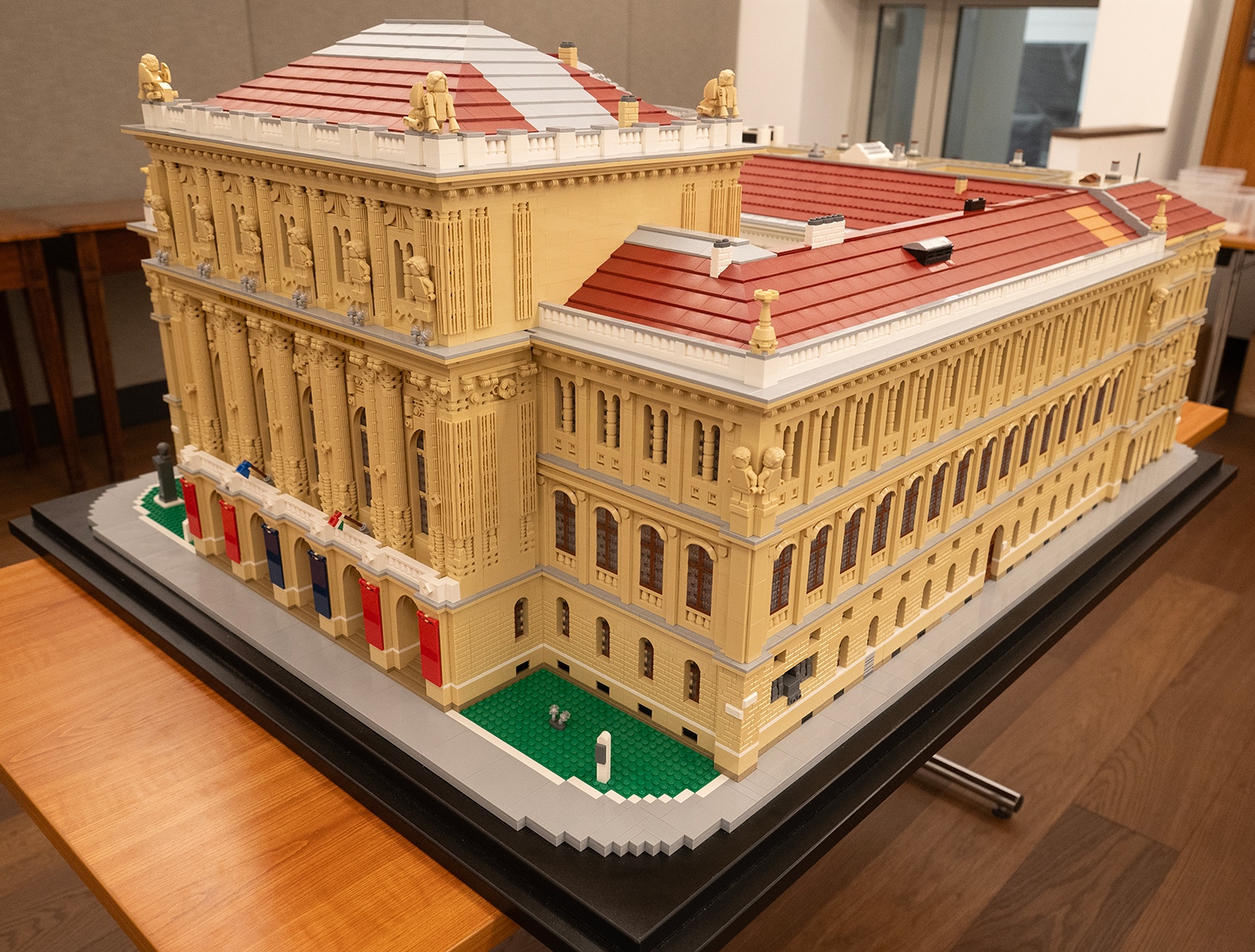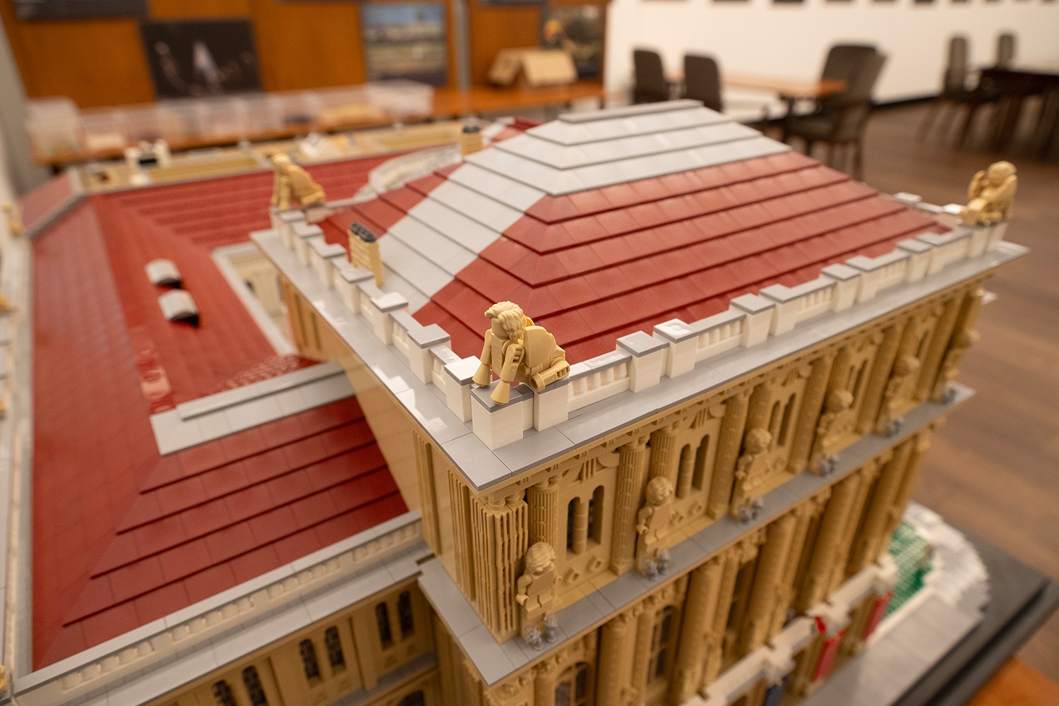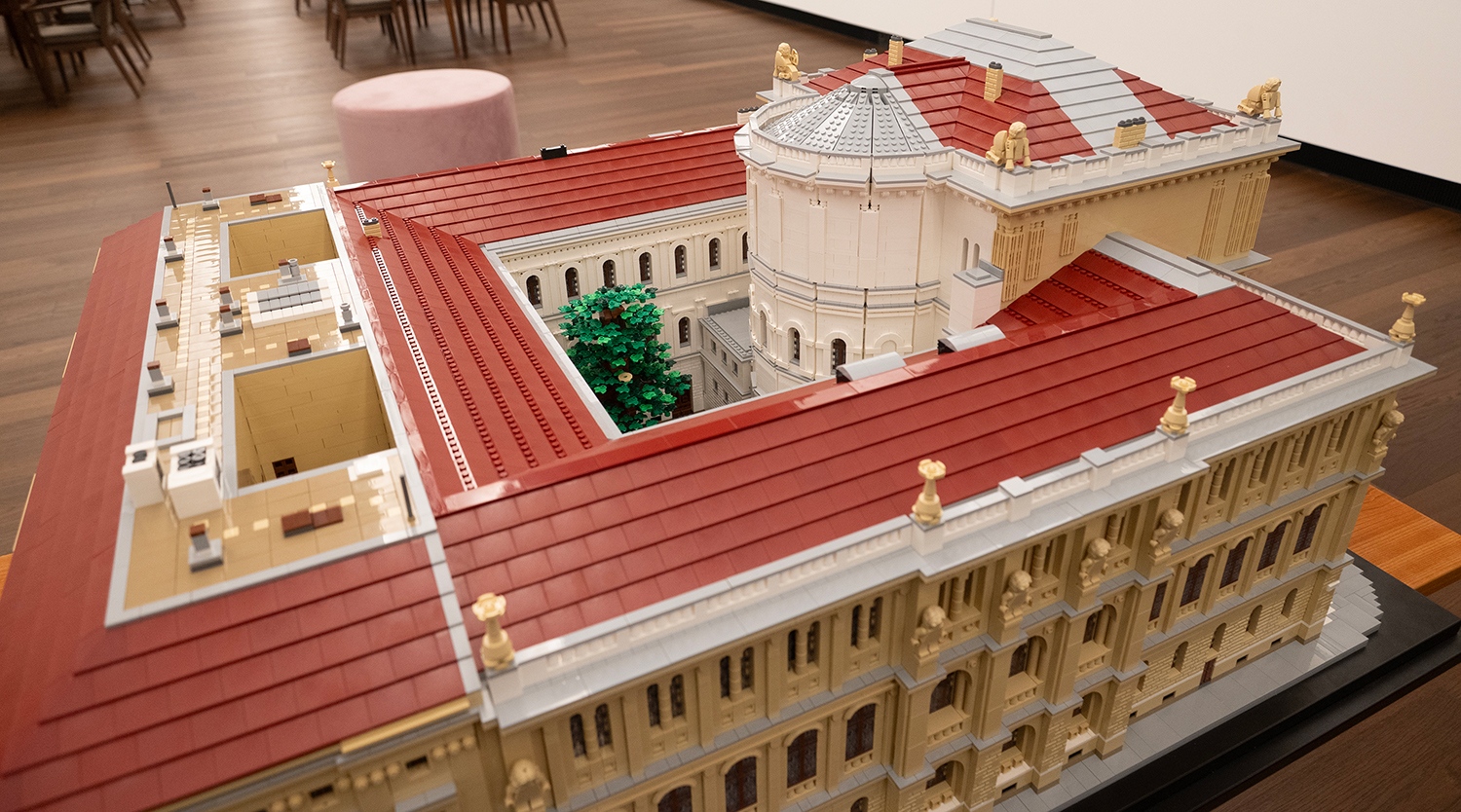 Az MTA Székház ilyen formában való újraalkotásának ötletével egy éve keresték meg a Fiatal Kutatók Akadémiájának tagjai Dóczy Balázst, aki megtervezte a lenyűgöző makettet. Az ő neve ismerősen cseng mindazok előtt, akik találkoztak már a hazai ikonikus épületek LEGO kockákból megépített változataival. A részletek iránti érzékenysége és játékos precizitása most is tetten érhető az MTA székházának jubileumi modelljén. A kicsinyített épületen megjelennek a korinthoszi oszlopok, az íves ablakok, a homlokzati díszítőelemek, a tudomány nagy alakjait idéző szobrok és a szfinxek, sőt felülről a székház belső udvara is láthatóvá válik. Az MTA nemrég elkészült Új és Régi Képtáráról szóló írásunk itt olvasható.