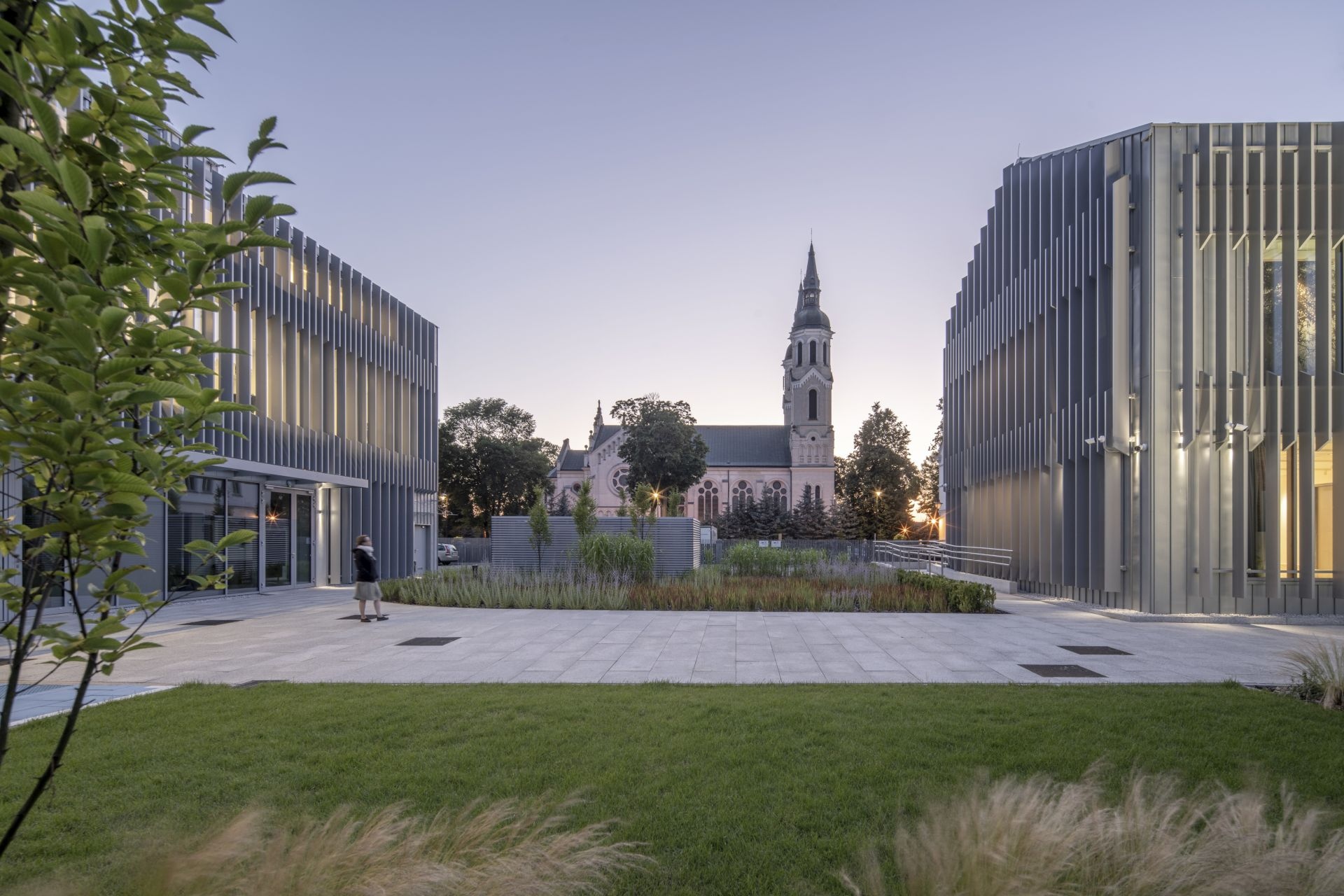 Az intézménynek azonban több helyre volt szüksége mind a kiállítások, mind az adminisztratív funkciók számára. A múzeum új részének építészete – a meglévő épület bővítése és egy új, a telek mélyén elhelyezkedő, térbeli ellenpontként szolgáló szerkezet – a 19. és 20. század fordulójának városi házainak formáját folytatja, meredek nyeregtetővel. Homlokzata a fény és árnyék szobrászati használatával a napszak és az évszak függvényében változatosabbá válik. A történelmi épület finom hátteréül szolgálva, finoman utal Augustów és környékének tájára is. Szimbolikus szinten az építészet a helyi erdőre utal, amely az augustów-i razzia tragikus eseményeinek helyszíne volt.