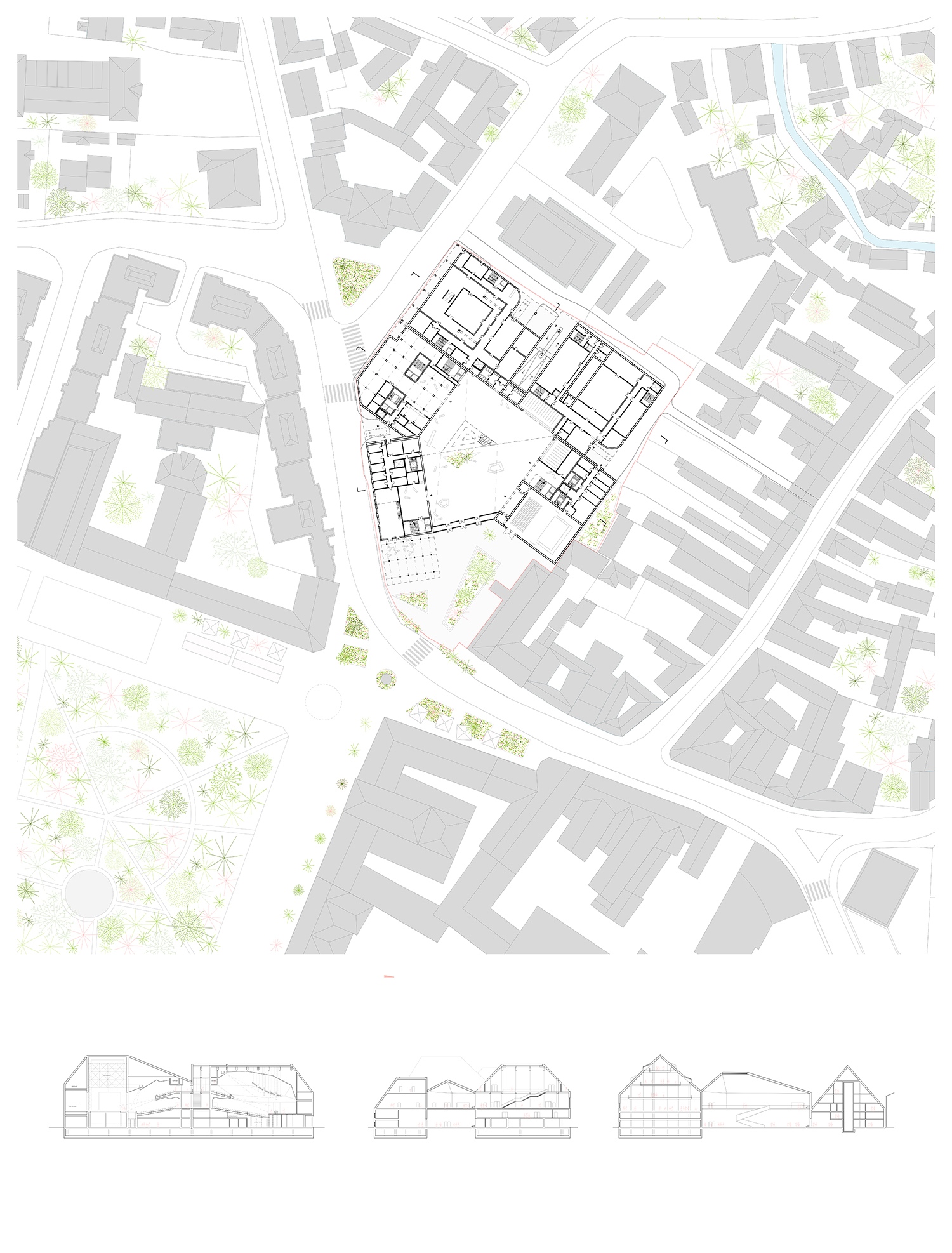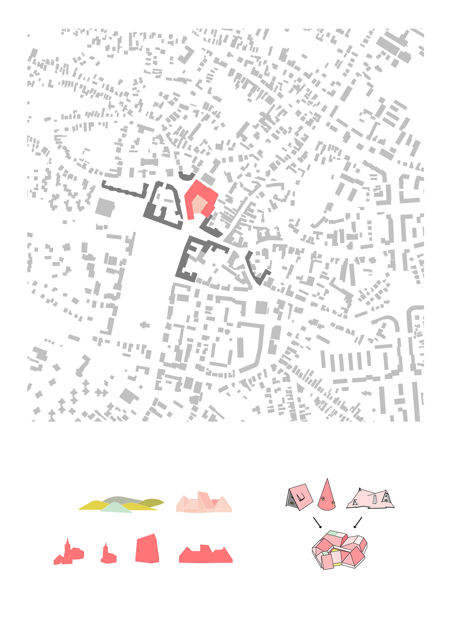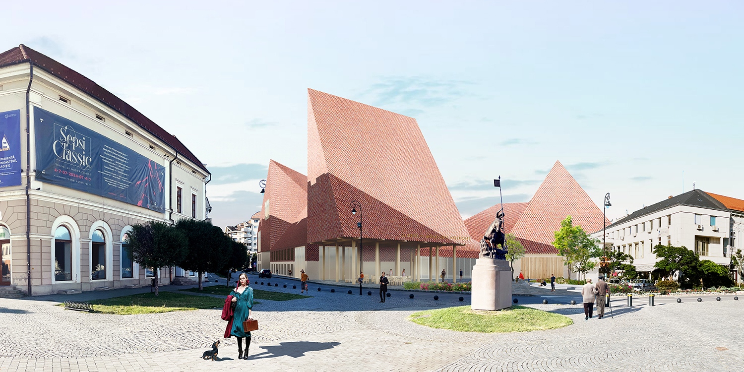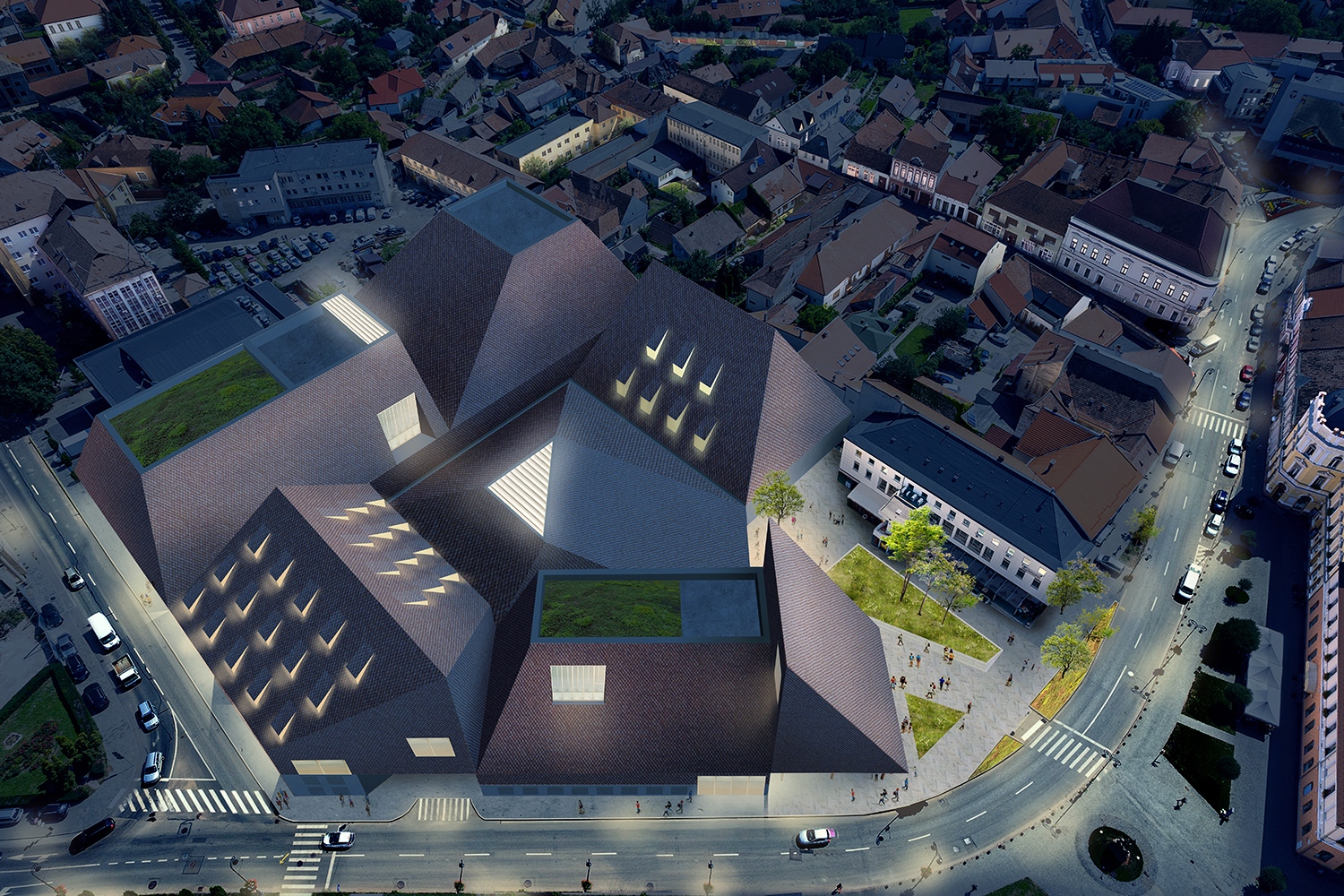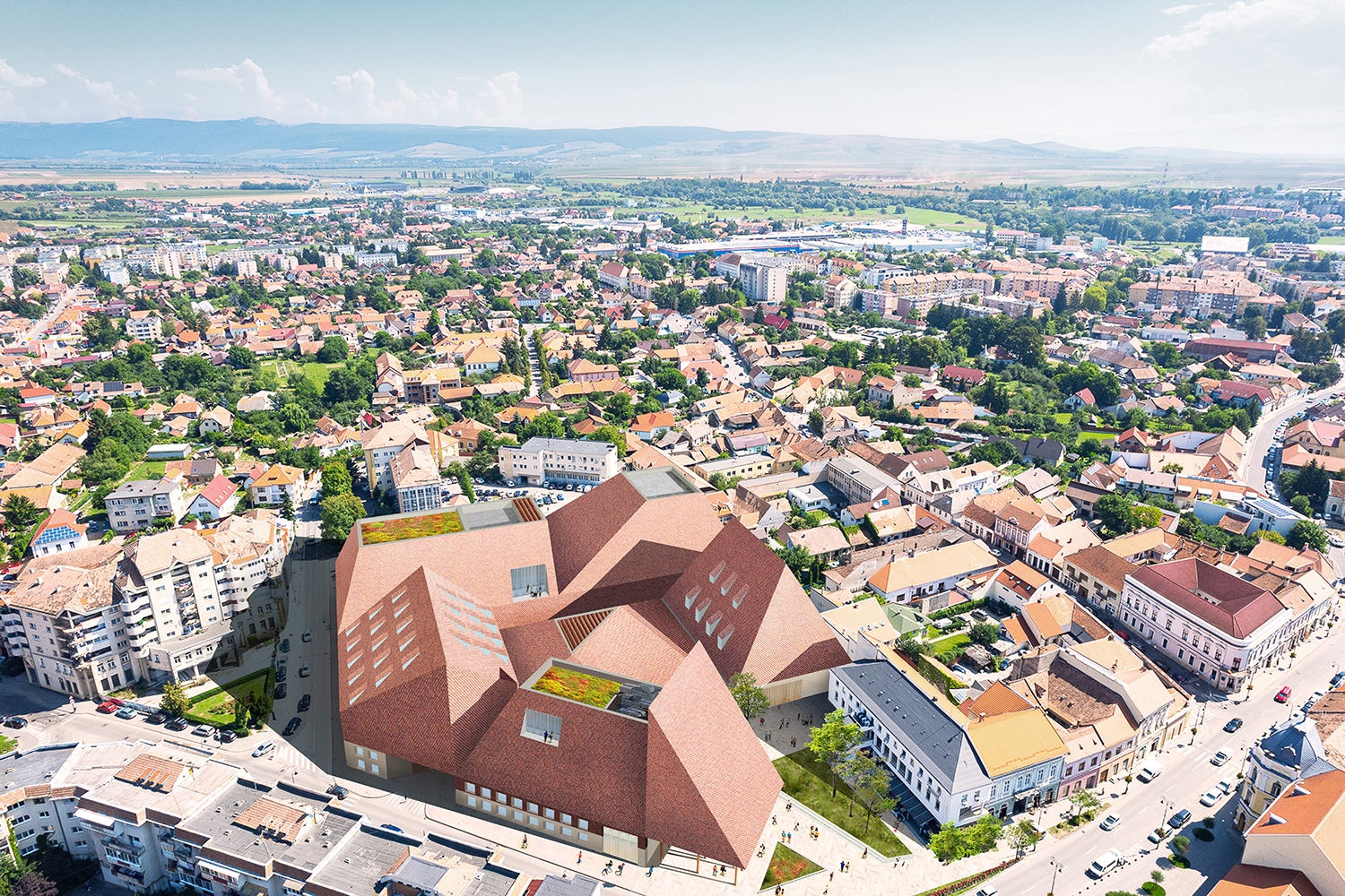 Kós Károly és Toroczkai Wigand Ede építészetére támaszkodunk, amelyek referenciális forrásai az építészeti formálásunknak. Az épület egy egyszerű elemekből építkező, urbánusan komplex tömegstruktúra. Egyes egységei a hagyományos, magastetős helyi építészeti kultúrára utalnak. A mélyről induló magastetők segítenek az emberi léptékhez közelíteni ezt az önmagában jelentős méretű építészeti programot. Az egyes házakból összeálló kristályszerkezet a város különböző pontjairól különböző sziluettet mutat.