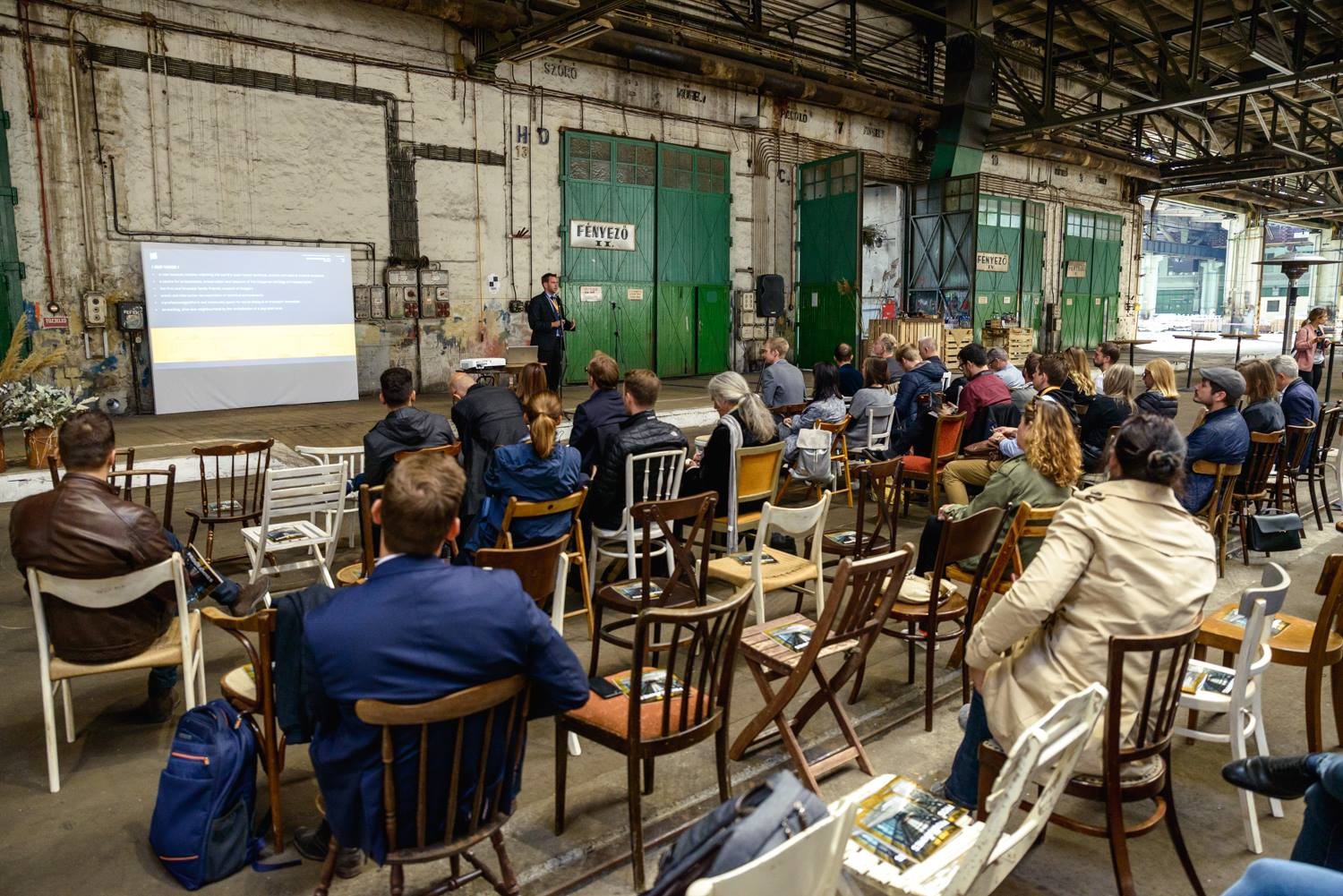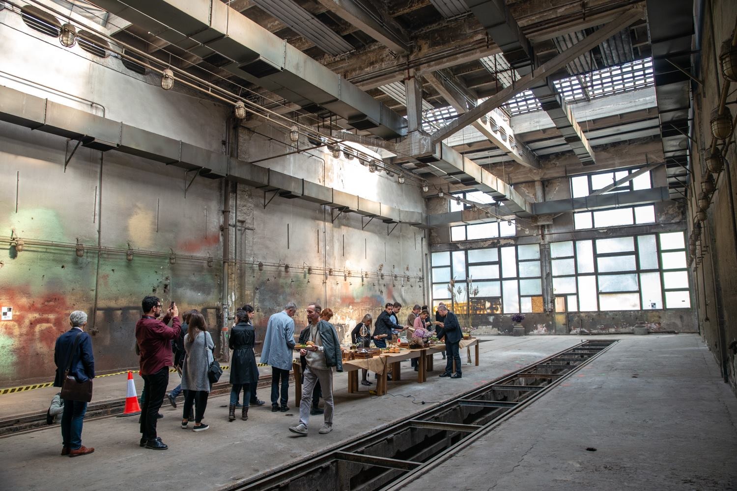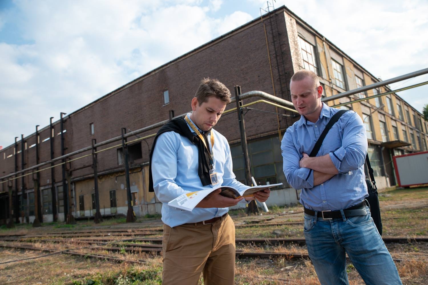 Végre a helyszínen, vagyis a kőbányai Északi Járműjavítóban üdvözölhettük a pályázat első fordulójában kiválasztott 15 sikeres magyar és világhírű nemzetközi építésziroda képviselőit. A héten lezajlott helyszíni bejárások során az építészek közvetlen, személyes benyomásokat szerezhettek az ún. Diesel-csarnokról és környezetéről, amelynek átalakítása a tervpályázat tárgya.
