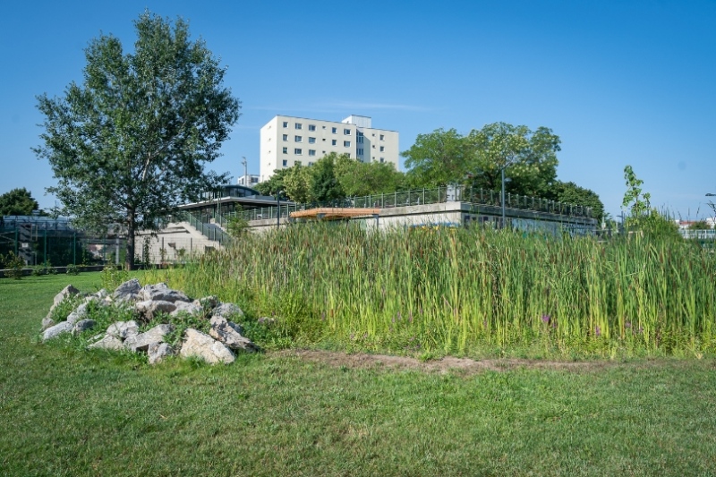 Esőkertek, játszóterek, sportolásra alkalmas eszközök, kutyafuttató, ivókutak és sok-sok zöld gondoskodnak a lakók jólétéről: harmincezer négyzetméteren épül a bécsi okosváros, Aspern Seestadt új multifunkciós parkja.
