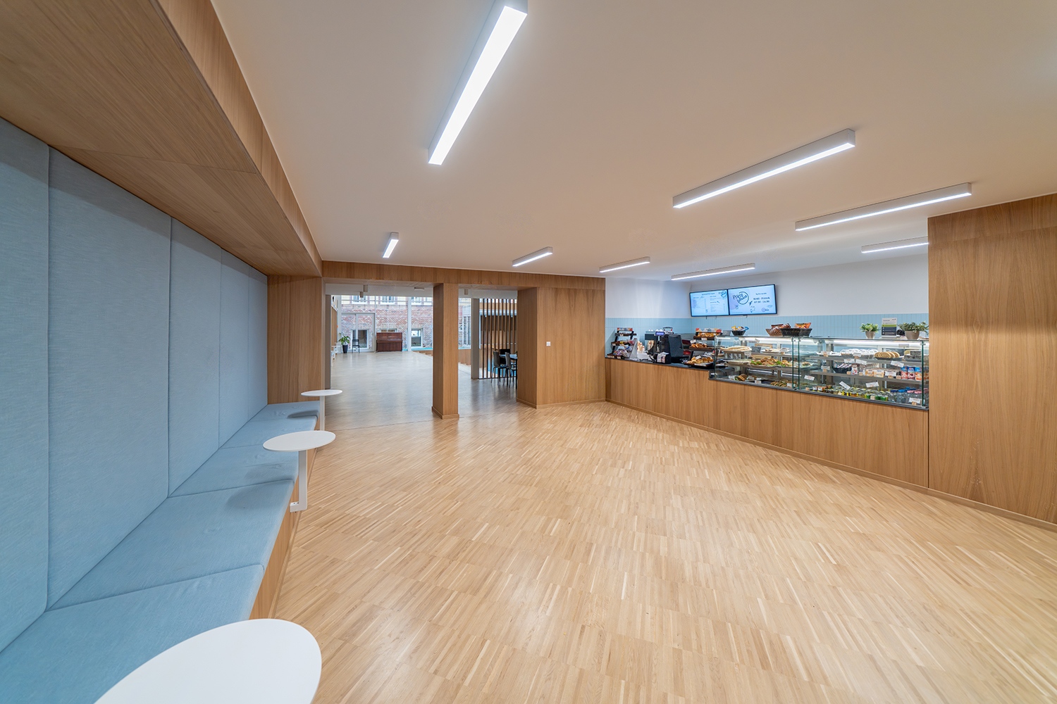 Az általános iskolai és a gimnáziumi rész külön-külön emeletre került. Ezekben a Flo Architects és az MCXVI Építészműterem egymás mellett érvényesülnek, sőt, van olyan térsor, amelyet az iskola pedagógusai és diákjai önállóan alakítottak a maguk képére. Itt olyan közösségi tervezés tanúi lehetünk, amelyben mindenki egyenlően vesz részt, és ahol az építész nem feltétlenül irányít, inkább csak javasol, együttműködik. A speciális pedagógiai program, amelynek nagyon fontos része a diákok aktivitása is, ebben az esetben azt igényli, hogy a terek hangulatát, karakterét, az anyagok, burkolatok minőségét azok határozzák meg, akik itt töltik mindennapjaikat. Az építészek nagyfokú rugalmassága és empátiája kellett ahhoz, hogy ezt megértsék, elfogadják és integrálják a saját koncepciójukba.
