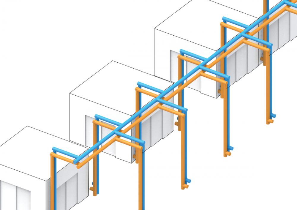 A város infrastruktúrája láthatatlan. A várostest rejti magában és csak olyan csatlakozási-pontokon bukkan elő ahol nagyobb léptékű rendszerekhez kapcsolódik. Ezzel ellentétben a bódé-vásárok esetében láthatóvá válik ez a rejtett rendszer. Az ultrastruktúra homogén, nyomtatott sejtje már magában foglalja a működéshez szükséges rendszerek hálózatát, azokat minden elem csatlakozásánál folytonosítani tudja. Az anyagában színezett, monolit elemek sorolása így végtelenített, önmagában is zárt rendszert tud alkotni - egy elem cseréjével a rendszer javítható, elavulása esetén darálható, anyagában újrahasznosítható.