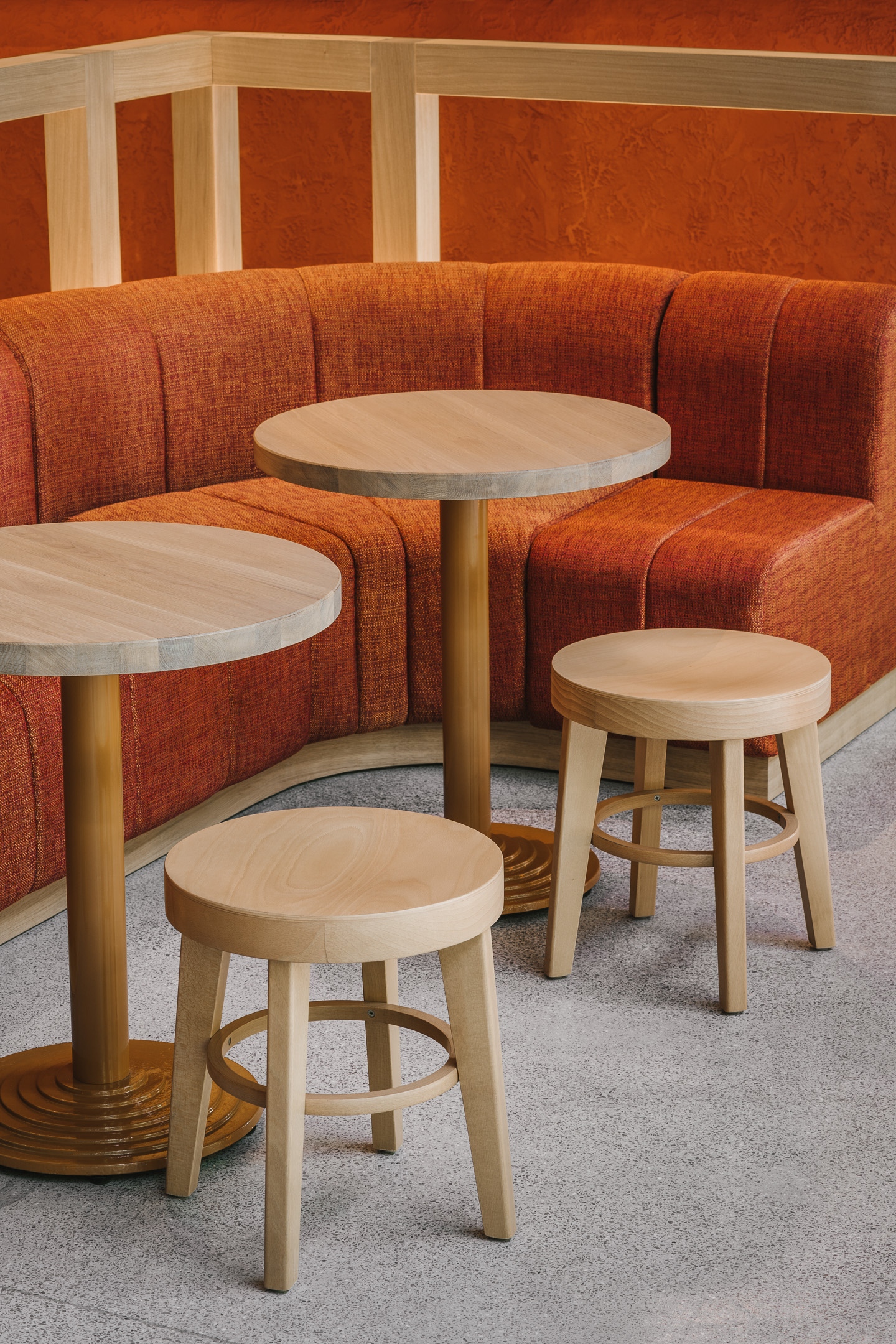 Az étterem változatos és hangulatos tereit egyedi gyártású, tömörfa bútorok töltik meg. A NOKE tervezői meghagytak jónéhány részletet a régi sörgyárból, ilyenek többek között a klasszikus, fa söröshordók, amiket asztalnak, padnak alakítottak át. Ugyanakkor további izgalmas megoldásokat is találunk szerte a létesítményben, úgy mint a rézből készült sávvilágítás, ólomüveg lámpatestek, vagy a vendégváró rézkapuk.