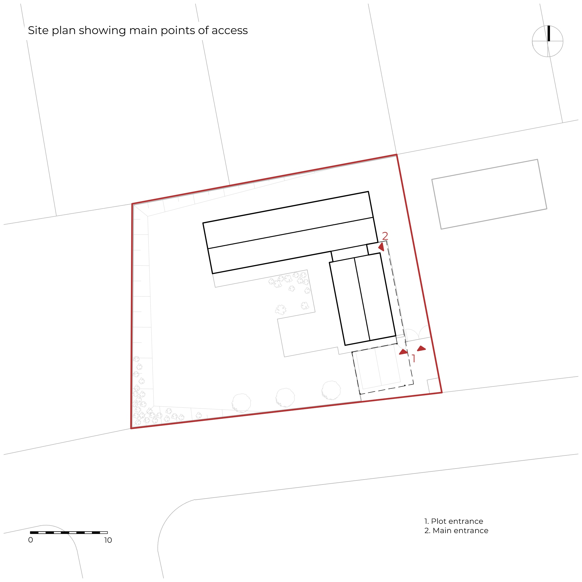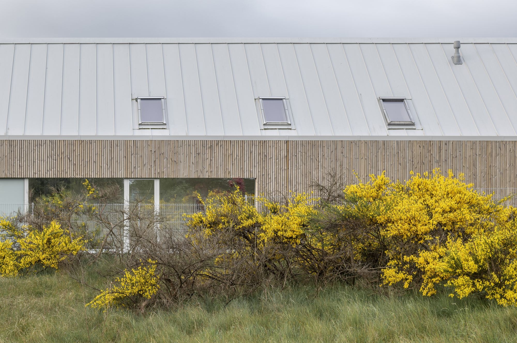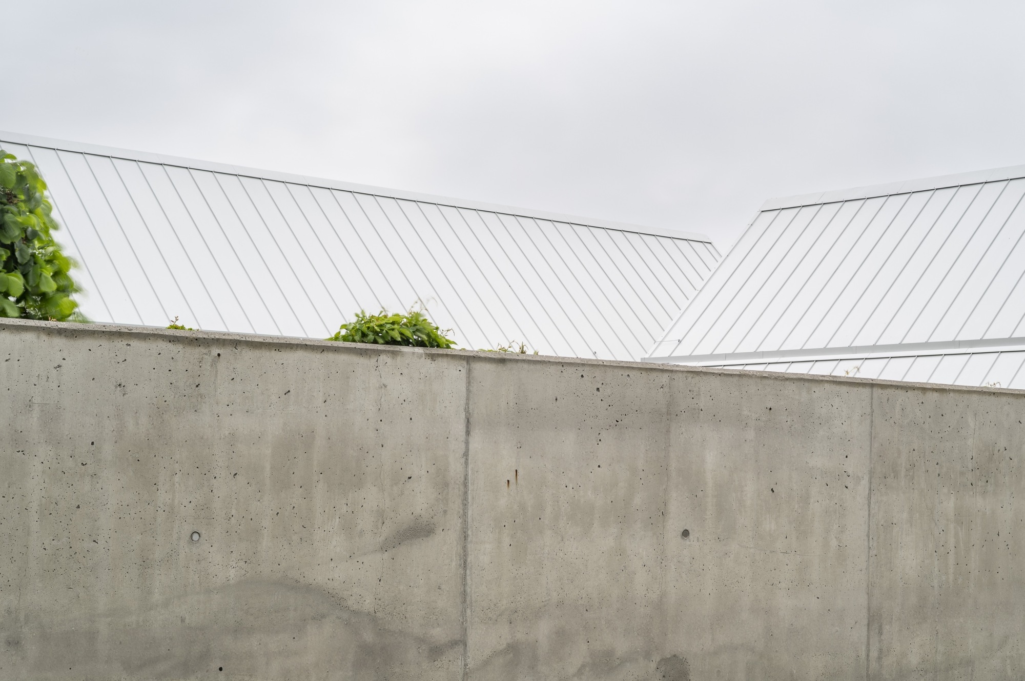A helyszín maga határozta meg az építészet logikájának nagy részét. A fákkal körülvett, tengeri szellőnek kitett terület olyan szerkezetet igényelt, amely inkább beleolvad a tájba, mint hogy kiemelkedjen belőle. Az építészek két, kissé eltérő hosszúságú, L alakú elrendezésű, hosszúkás tömeggel válaszoltak erre az igényre. A minimalista összekötőelem, amely diszkréten elrejti a bejáratot, egy védett udvart határol, amelynek zöld teraszát betonfal választja el az utcától.