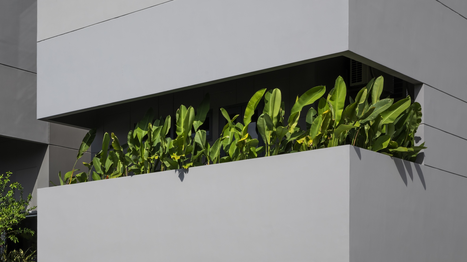 A burjánzó, smaragd vegetáció nemcsak látványos – árnyékoló és zajcsökkentő hatása miatt is értékes eleme az enteriőrnek, egyúttal pedig természetes módon hűti, szűri a beáramló levegőt. A nyílászárók szükség szerint állítható, méretes üvegtáblái az aktuálisan szükséges mennyiségű természetes fénnyel árasztják el a belső helyiségeket.