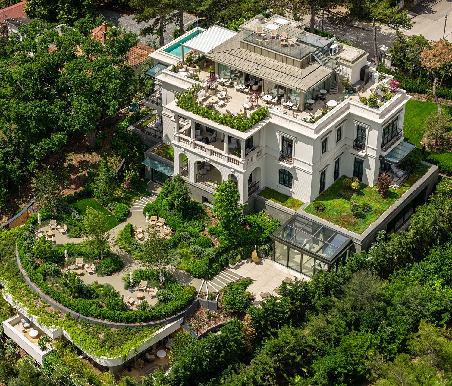 A villát lenyűgöző kert veszi körül: a vendégek minden szobából kapcsolódhatnak a balatoni tájhoz és Balatonfüred természeti szépségéhez. A kényelmet mini konferenciaterem és wellness-részleg biztosítja, a villa tetején pedig a 360 fokos panorámával rendelkező tetőtéri bár és egy diszkréten elhelyezett medence is különleges hangulatot kínál.