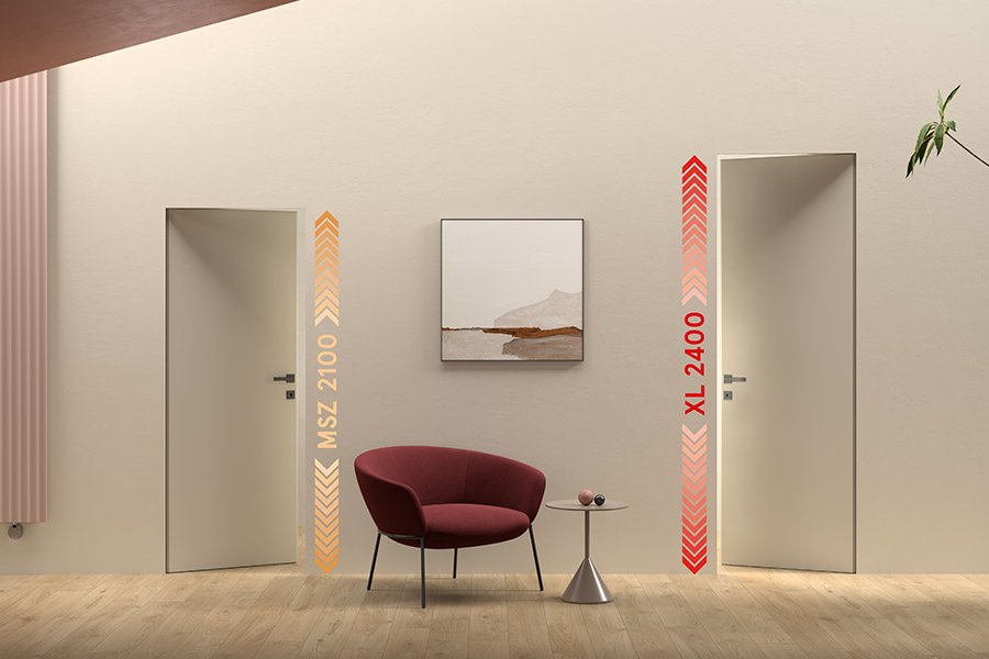 Az xREVERx tapétaajtók különböző méretekben is elérhetők – magyar és olasz szabványméretek mellett akár 2400 mm magas, extra méretben is, így a nagyvonalú belsőépítészeti koncepciók tökéletes kiegészítője is lehet.