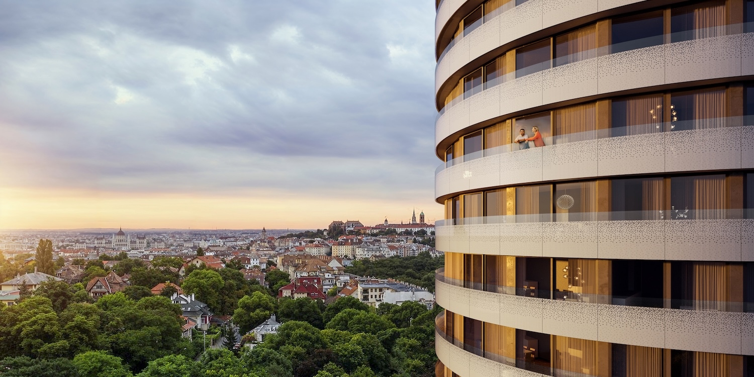 Az 1967-ben átadott és a magyar modernista építészet egyik legjellegzetesebb példájaként számon tartott, kör alakú Hotel Budapest torony most trófeának számító lakóingatlanként éled újjá. Az építészeti megújulást a neves magyar KÖZTI tervezőiroda jegyzi, megőrizve a sziluettet, míg a belső tereket az osztrák BWM Designers & Architects stúdió tervezte újra. Az eredmény egy modern klasszikus, mely letisztult bájjal őrzi meg a város látképét, új fejezetet nyitva a privát, prémium életvitelben.