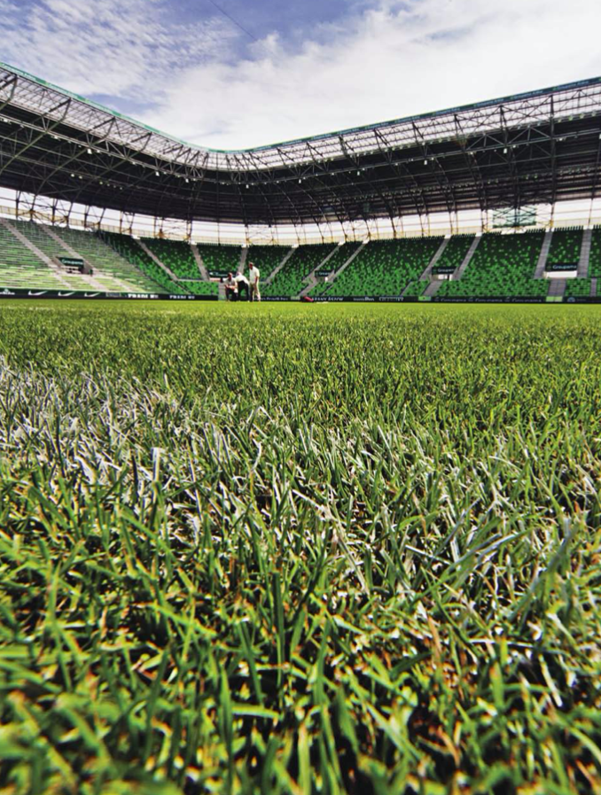 Ha egyetlen dolgot kellene megnevezni, ami némi aggodalmat keltett már előzetesen, akkor az a játéktéri gyepszőnyeg kivitelezése volt. Ez az, amit a gazdag építőipari múltunk során még nem csináltunk. Készült nálunk mélygarázs, bonyolult vasbetonszerkezet, területrendezés, elképesztően sokféle építőipari munka, de olyan felületet, ami elnyeli a vizet, ami nem ég ki napsugárzáskor, és nem rohad ki esőzés után, de nem árt neki a hó sem, nos, olyat még nem csináltunk. Azóta lezajlott egy olyan bajnoki mérkőzés, ami előtt óriási felhőszakadás volt, és a vihar után egy órával már meccset játszottak a pályán, vagyis az elvezetés, a rétegrend jól vizsgázott ezen a „próbaüzemen”.