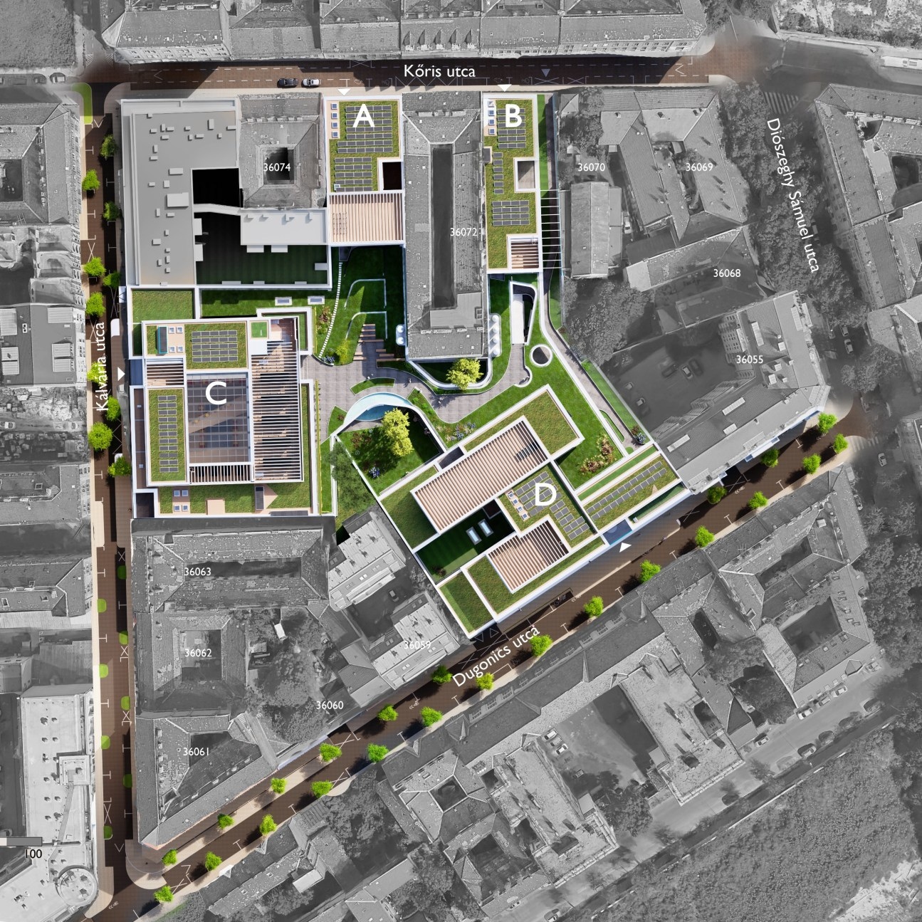 V.G.: A Semmelweis Egyetem célja, hogy belátható időn belül bekerüljön a világ legjobb 100 egyeteme közé. Ehhez az oktatási létesítmények mellett szüksége van egy kutatásokhoz alkalmas tudományos központra, ahogy ez a legkiválóbb egyetemek, mint például az Oxford, Cambridge, Delft vagy épp az MIT esetében is megszokott. Erre az igényre ad választ a tervezett épületegyüttes. Mivel ennek földrajzilag is minél közelebb kell lennie a többi egyetemi tömbhöz a gyógyító és a kutatótevékenység „átfedése” miatt is, a megújulásra szoruló józsefvárosi tömb kézenfekvő helyszínválasztás volt.