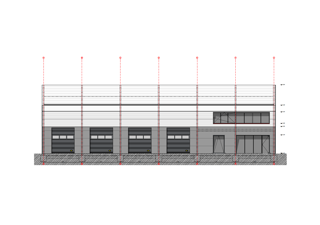 Feltétlenül szót kell ejteni az épület környezettudatos tervezési elemeiről. Az árnyékoláson túl a sédtető formája az északi, szűrt fény beérkezését biztosítja. Ez a fénymennyiség elegendő a műhelytér káprázatmentes, természetes megvilágításához napközben. A tető formája amúgy harmonikusan követi-folytatja a főhomlokzat formáját a hátsó traktus irányába. A sédtetős kialakításnak köszönhetően mindkét tetősík teljes felületén napelemeket helyeztek el – kapacitása jelenleg 30 kW, amelyet a megengedett 50-re kívánnak bővíteni, de a kizárólag megújulók használatának köszönhetően a ház már így is nulla energiafelhasználású. A 30 kW mennyiség amúgy nem csupán a hőszivattyús fűtési-hűtési rendszerre segít rá, de a szervizelt autók töltésére is elegendő.