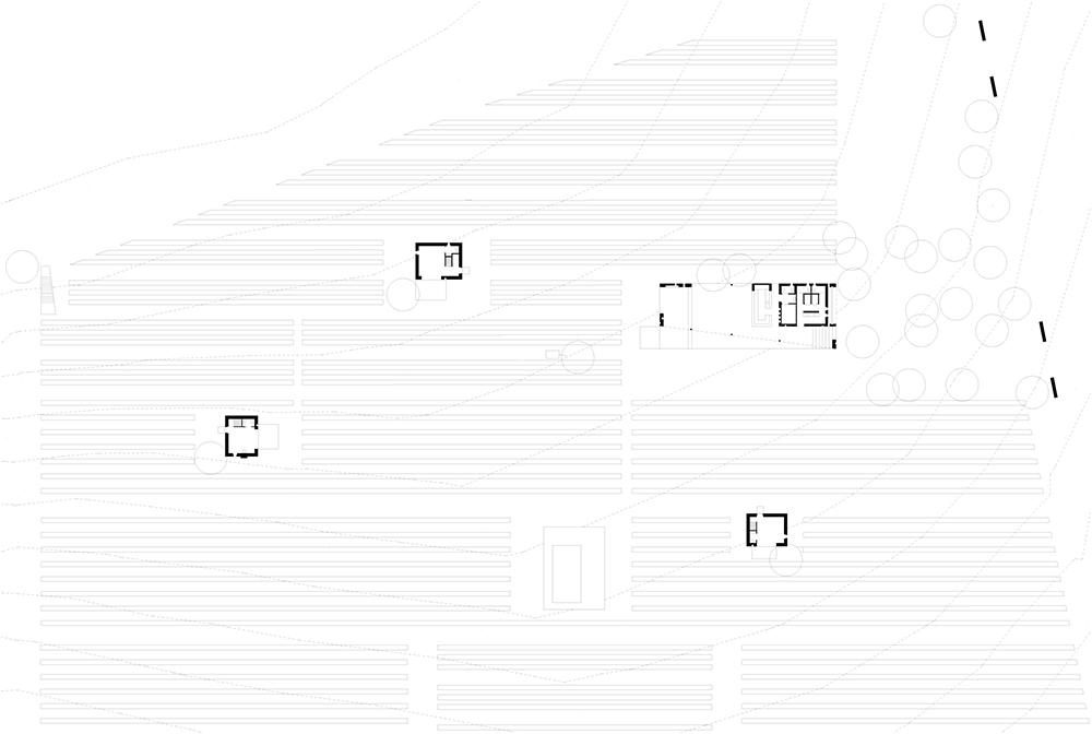 Borkempingnek hívják a megbízók azt a három „kunyhóból”, apró medencéből, fedett kóstolóteraszból, kommunális helységből álló birtokközpontot, amit hosszú évek egyeztetései, finomításai során Gereben Péter, Marián Balázs építészek és munkatársaik hoztak tető alá. Nem véletlenül használom a „kunyhó” szót, hiszen a három önálló szállásépület morfológiai, szerkezeti archetípusa az Eger-környéki szőlőkben imitt-amott még látható lábas kunyhó volt. Archaikus alapforma, archaikus szerkezetek, amelyek nagyon is illenek ehhez a helyhez, ugyanakkor a tervezőknek mégis sikerült kortárs ízekkel gazdagítani a koncepciót. Így a finom, pontszerű, szinte tűhegynyi beavatkozás a dűlőbe, a laza, szórt kompozíció, az összetolt tetősíkokra emlékeztető teraszfedés, a dűlő felső csücskén nagyszerű dramaturgiai érzékkel elhelyezett léckilátó rendkívül szerves összképet ad.