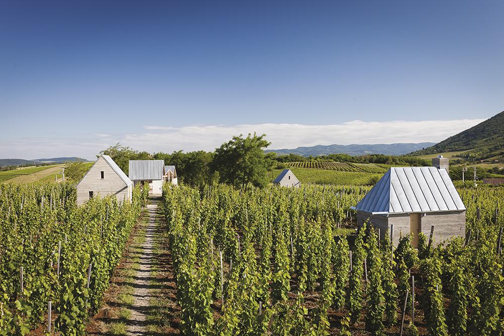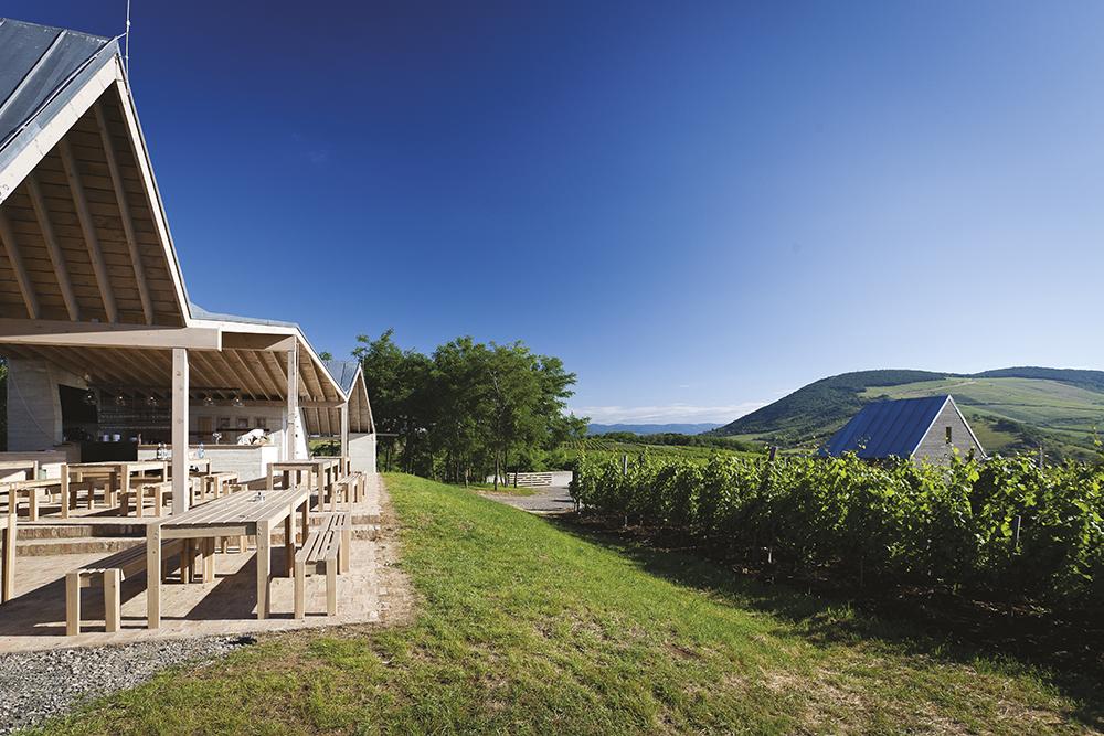 Ritka pillanat a hazai kortárs építészetben, amikor minden a helyére kerül. Minden alatt most nem holmi költői túlzást, hanem valóban mindent kell érteni. Adott a táj, a meg-művelt föld, az épületek és a helyükre kerülő emberek. A Nagy-Eged hegy lábánál, Almagyaron az érseki szőlőbirtokon jártunk.