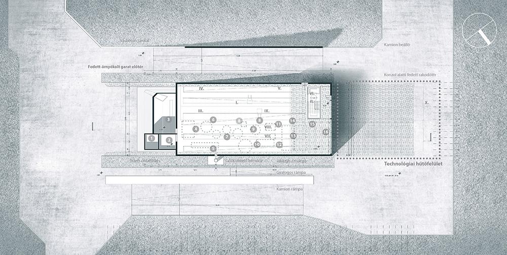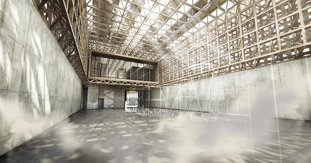Fontos kérdés volt a tervezés kiindulásakor, hogy hogyan lehet egy gyártási folyamat azonos magával az épülettel. A völgy természeti erőforrásai jelentették a nullpontot, az erre ráépülő technológiát pedig először a hazai erdőgazdálkodási gyakorlathoz kellett illeszteni, figyelembe véve a magyarországi üzemekben alkalmazott tisztító és kérgező berendezések működési elvét. Ehhez egyébként egy itthoni fapellet üzem jelentette a technológiai mintát. Utána a gyártási láncból létrehoztam egy keretprogramot, amely a haszonanyag mozgási útvonalait pneumatikus és mechanikus szállítási módokból építi föl. Ez tartalmazza a géplánc elemeinek elhelyezési- és szerviztér igényét is. Végül az így kapott algoritmust egy véges elemes programmal és az anyaghasználati szempontok figyelembevételével, faszerkezetre optimalizáltam. Ez az optimalizált térrács tulajdonképpen a gyártástechnológiára írt keretprogram háromdimenziós vetülete, és magának az üzemnek a fa tartószerkezete.