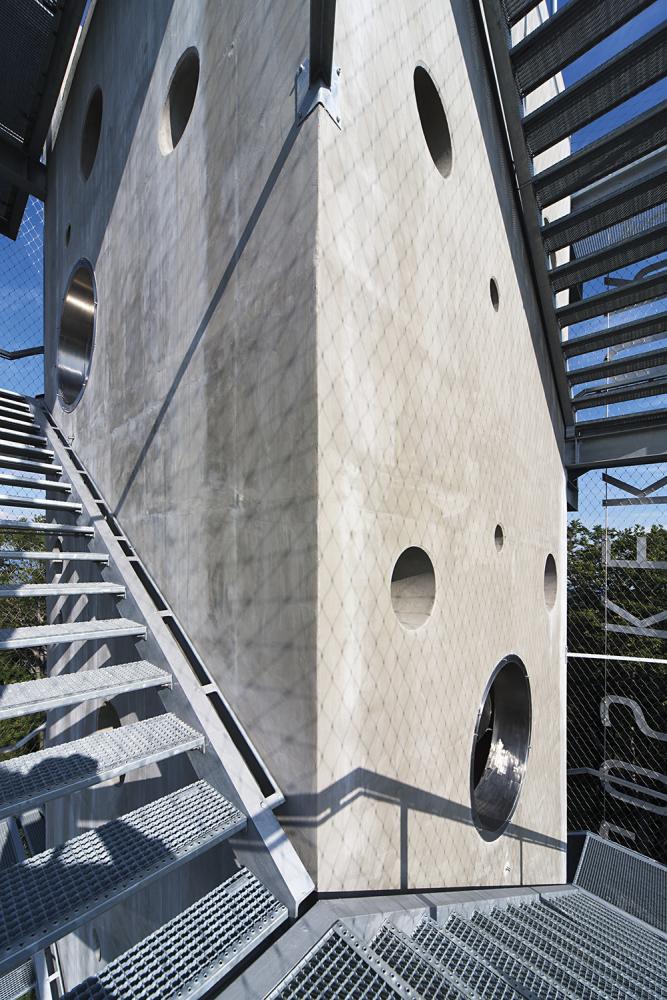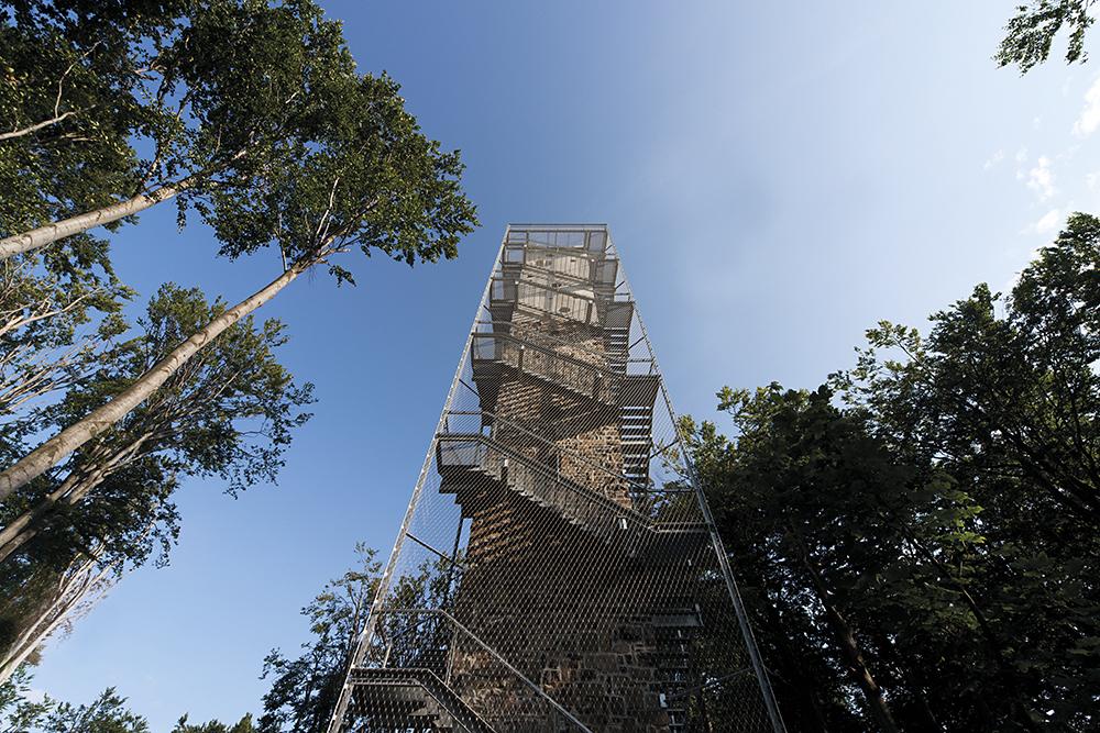 Minden elem egy ösvényre fűzhető fel, minden elem más és más igényt képes kielégíteni. Az átépítés után végre a fakoronaszintjénél magasabb, 360 fokos panorámát, tiszta időben tátrai látványt biztosító kilátó építészeti kvalitásairól már több helyütt, többen írtak. A régi kilátó belsejébe betonozott alap folytatásaként kinyúló, megközelítőleg tíz méter magasságú ráépítés lehetőséget biztosított arra is, hogy három szinten ún. bivak szállást alakítsanak ki, aminek belső tere nappal különös, keverten elszórt, de lényegében piros-fehér-zöld színű ablakszemecskék fényével telik meg. A tornyot, akár egy varázsköntös, különféle fényekben derengő fémháló veszi körül, teszi egyneművé, amit a kettős spirálban le- és felfutó acéllépcső merevít a belső mag köré. Elegáns, tartós és funkcionálisan is tökéletesnek ható megoldások ezek, melyek a felújítás és bővítés mellett valódi esztétikai többletértéket is adnak a toronynak.