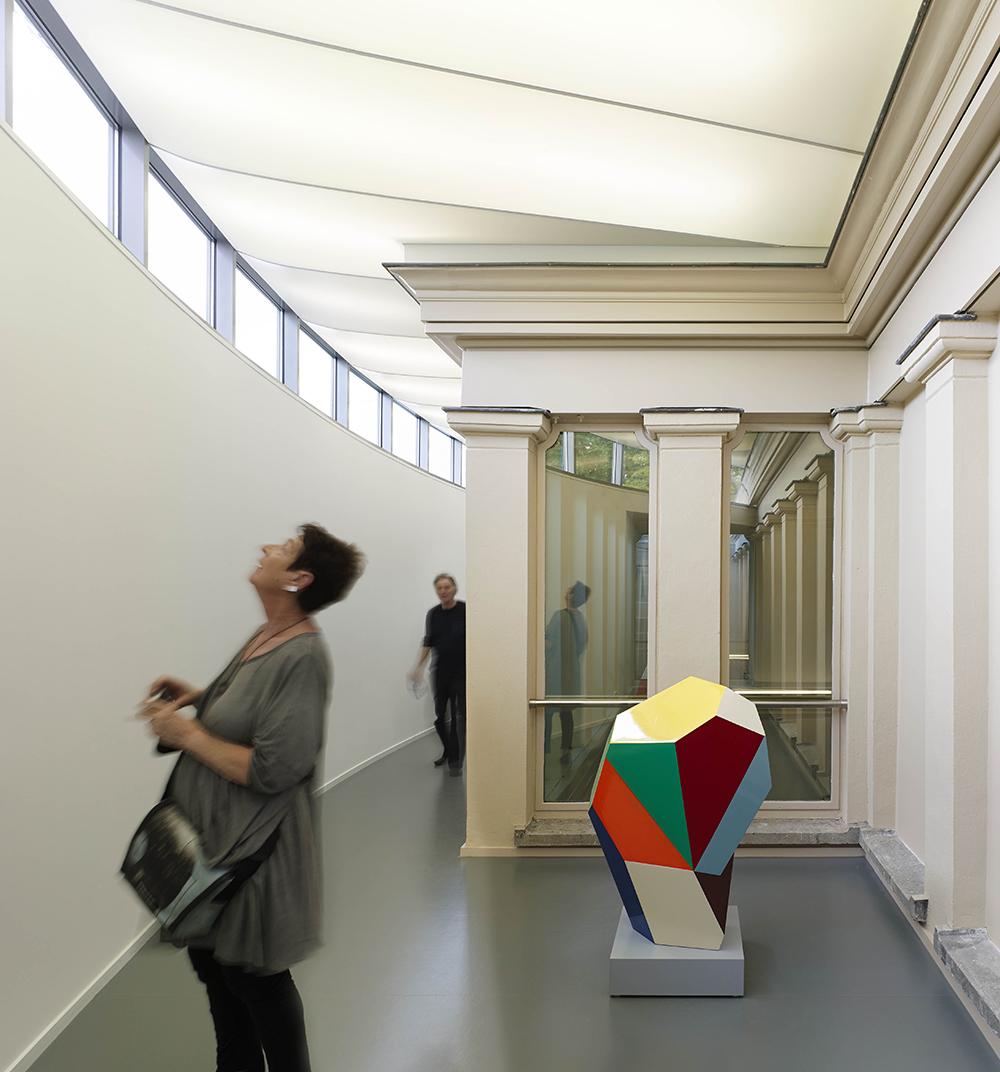 A két karakteresen eltérő városrész határán szabadon álló múzeumépület kötött, szimmetrikus formájával, környezetétõl való elkülönülésével meghatározó eleme a városi szövetnek. A középkori sűrű és statikus városközpont és a városfalak elbontása után, a 19. században kialakított szellõs és dinamikus angolpark szomszédjában álló tömb sajátos városi karakterrel bír. Ezt a karaktert erõsítendõ, a bõvítést tervezõ Bierman Henket architectennek sikerült meggyõznie megbízóit arról, hogy az épületet nem horizontális, hanem vertikális irányban kell bõvíteni, megtartva ezzel jellegzetes téri kompozícióját. Így landolhatott, afféle szürreális kultúrspaceshipként az épület tetején, a fátyolos égben eltűnni látszó, ovális alakú, kétszeresen szimmetrikus bõvítmény.
