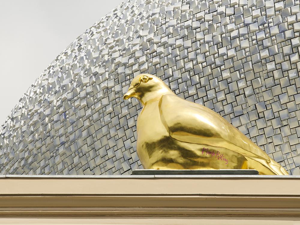 Az új épületrész komplex egységet alkot a múzeum többi részével, ugyanakkor szinte valószerűtlenül lebeg a klasszikus tömb felett, melytõl szerkezetileg független. Külsõ, plasztikus héját fehér és kék mázas kerámiaelemek borítják. Ennek a kialakításnak köszönhetõ, hogy szinte minden napszakban a nézõ számára úgy tűnik, mintha az épület határai az ég és a föld között elmosódnának.