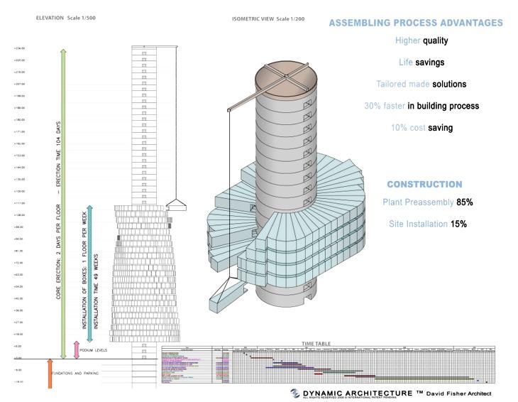 Semmi sem végleges az életben, az igényeink is folyamatosan változnak. Olyan házakat képzelek el, amelyek minket szolgálnak. Terveztem például Jeruzsálemben egy újraformálható teret és egy lakóházat, ahol, ha esik az eső, automatikusan bezáródik a tető. Innen indult a dinamikus épület gondolata. A forgó torony koncepciója onnan származik, mikor kinéztem egy New York-i apartman ablakán, ahol ugyanabból a szobából az egyik irányba Manhattan keleti, a másik irányba fordulva a nyugati oldalát láttam. Egy héttel előtte Miamiban néztem eladó lakást, egy felhőkarcoló felső emeletén. Kétszeres árat mondtak érte, mint a környezőekért, mert az óceánra nyílt innen kilátás. Összekapcsoltam ezt a két élményt és rájöttem, hogy miért ne lehetne olyan lakásokat és emeleteket építeni, amelyek mivel forognak, 360 fokos panorámával rendelkeznek? Így mindenki teljes kilátást élvezhet. Aztán felismertem, hogy ha az összes emelet külön-külön forog, más-más sebességgel, akkor az épület köpenye is folyamatosan változik. Tehát nem abból indultam ki, hogy létre akarok hozni egy házat, aminek mindig más alakja van. Megválaszthatod a forgás irányát, sebességet, a gyorsulást és az időzítést is! Néhányan úgy nevezik a forgó tornyot, hogy a „jövő szimbóluma”.