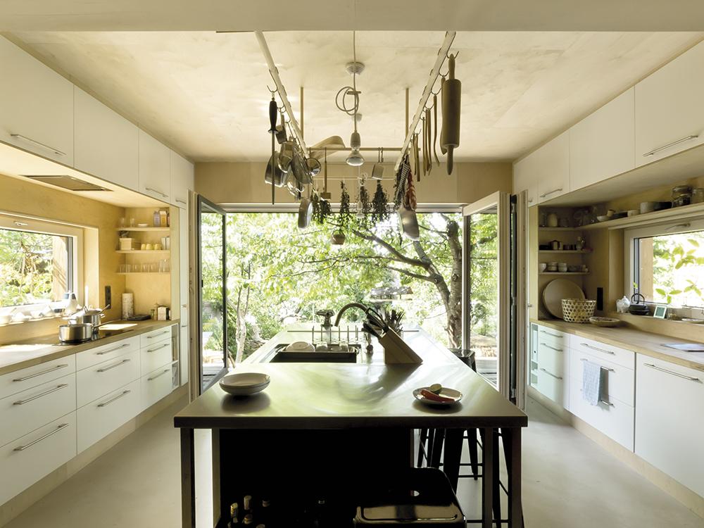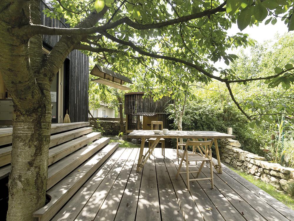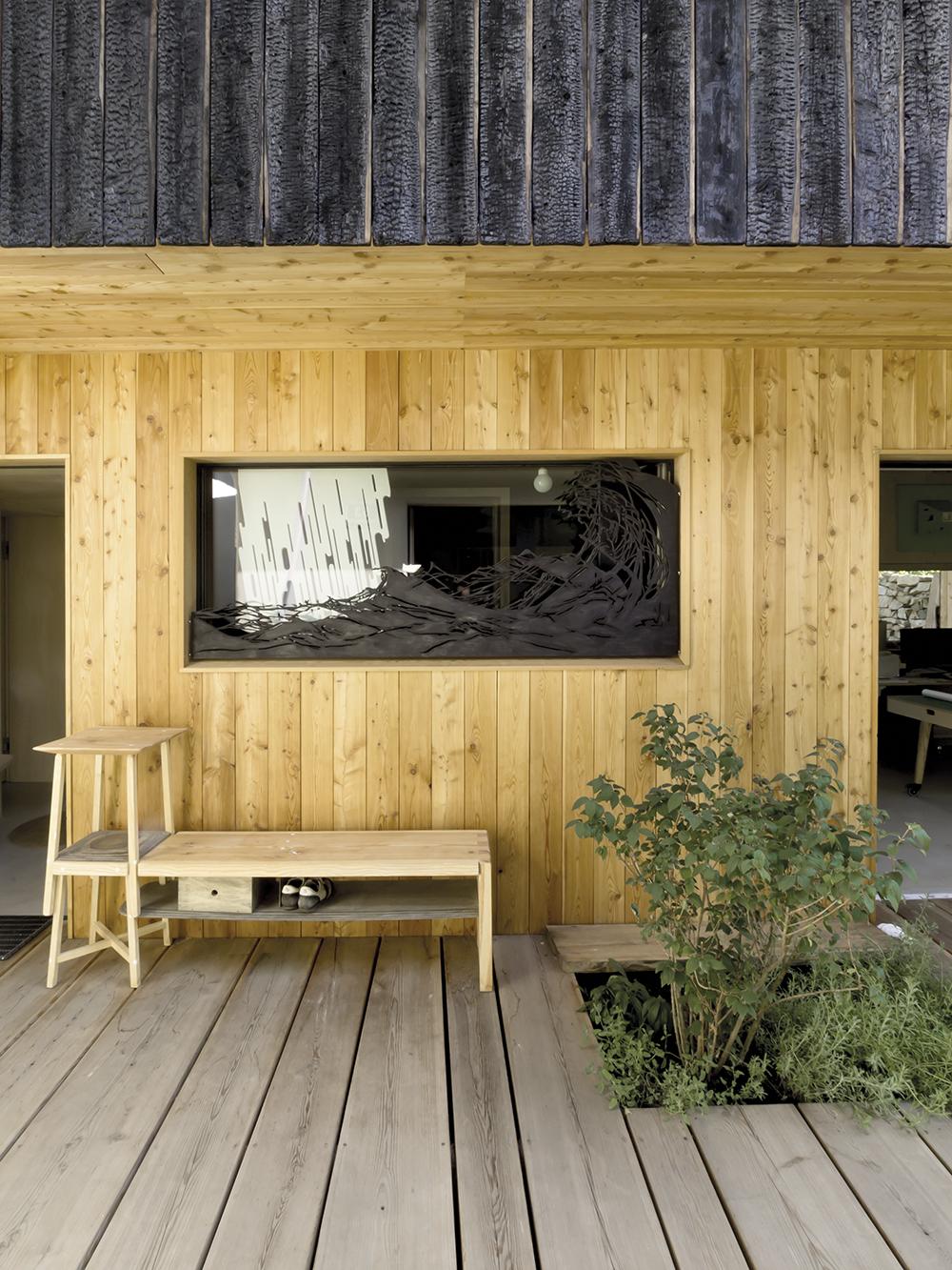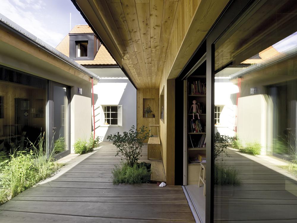 Az új épületrésszel, kereszt alaprajzúra kibővített együttes az a1house nevet kapta, jelezve, hogy itt valóban egy tető alatt az élet és a munka – az ódon házrész a család rezidenciája, az újabb szárnyakban működik a stúdió, 2-3 állandó kollégával. Ha kívülről tekintünk az épületegyüttesre egyértelmű, hogy szinte műemléki szemlélettel, „olvasható” homlokzatokat alkottak: a régi részek hófehér, homogén – a nyílászárókat vakolatarchitektúrával vagy keretezéssel nem elkülönítő – vakolatúak, az új részek natúrszínű deszkaborítást kaptak. Belsőépítészetük is hasonló elvek mentén alakult, eszerint a régi házbelsőben a „nagy forgalmú” helyiségeket epoxy-padló egyesíti, a falak a tégláig-kőig visszakapartak, ezeket egészítik ki a nyersbeton-felületek és helyenként a deszkázás. A munkaterek jellegzetes anyaga – falburkolat és bútor esetében egyaránt – a nagytáblás rétegelt lemez. Az teraszos épületrészek körül és között (az átjárókban) hamisítatlan dzsumbúj-kert, régi szárazon rakott kőfal maradványaival, 40-50 éves termő cseresznyefával. És még a bevezetőben említett latrina is megmaradt, persze új funkciót kapott, kerti tároló ma már.