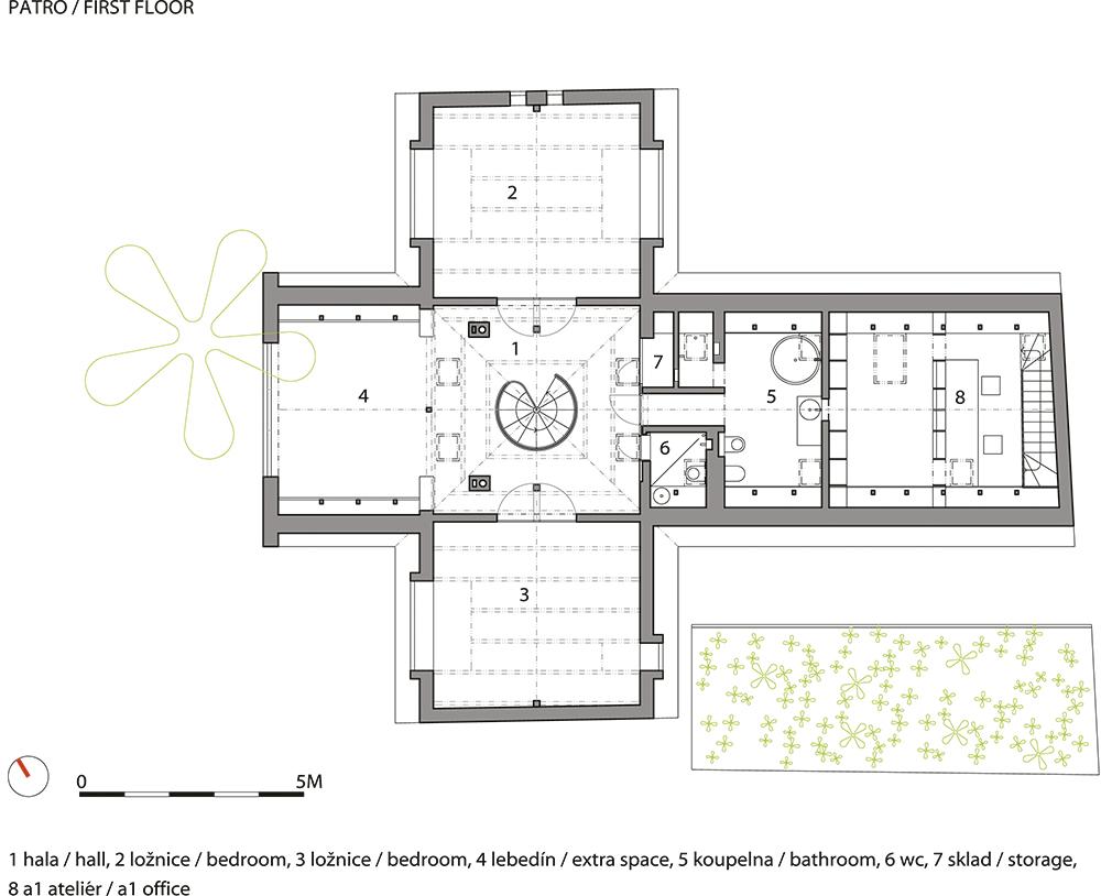 Prága központjától néhány kilométerre található Hloubětín. 1922 óta, amikor is létrejött Nagy Prága, a cseh főváros egyik kerülete, éppen a kilencedik. Nem mellesleg a világhírű Tesla cég főhadiszállásáról ismert ez a városrész. Itt talált 2003-ban egy kicsi házat az építészpáros, olyan régit, közel 200 éveset, ami még az új millennium idején sem kapcsolódott a városi infrastruktúrához, hogy mást ne mondjunk, egy legalább száz éves latrinát is találtak a kertjében.