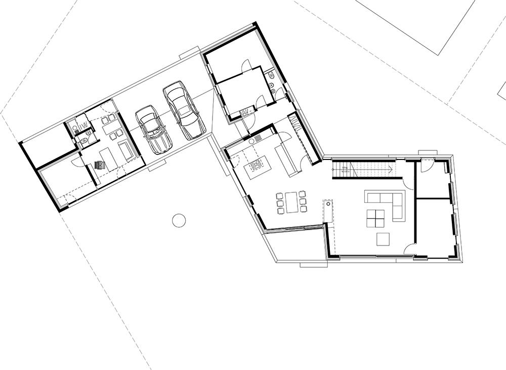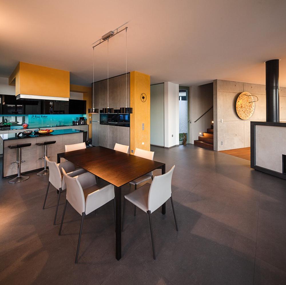 Mikor megbízó és építésze találkozásáról, kapcsolatáról érdeklődtünk, némiképpen meglepő módon azt a választ kaptuk, hogy családi házak esetében szinte kizárólag a baráti felkérések és ajánlások játszanak szerepet éppen úgy, mint idehaza. A németeknél egyébként is jellemző, hogy úgymond „veszik a házaikat”. A projekt tulajdonosa, a Bauträger – magyarul fejlesztő – kínál fel 5-6 tervváltozatot, ami közül a megrendelő választ, ritkább, hogy közvetlenül kér fel építészt. Ehhez bátorság kell és együttműködési készség, mindkét fél részéről. Ambrus fontosnak tartja, hogy alapvetően az építtető tervez, vagyis az ő elképzeléseit, vágyait kell megérteni, lefordítani és megvalósítani. Ugyanakkor az is gyakorlati tapasztalat, hogy a német megbízó semmivel sem képzettebb vizuálisan, nem jobb a térlátása, nem tájékozottabb a design és funkcionalitás kérdé-seiben, mint a magyarátlag. Minden tervezőnek le kell ásnia a gyökerekig, hogy megértse a megrendelő valós igényét.
