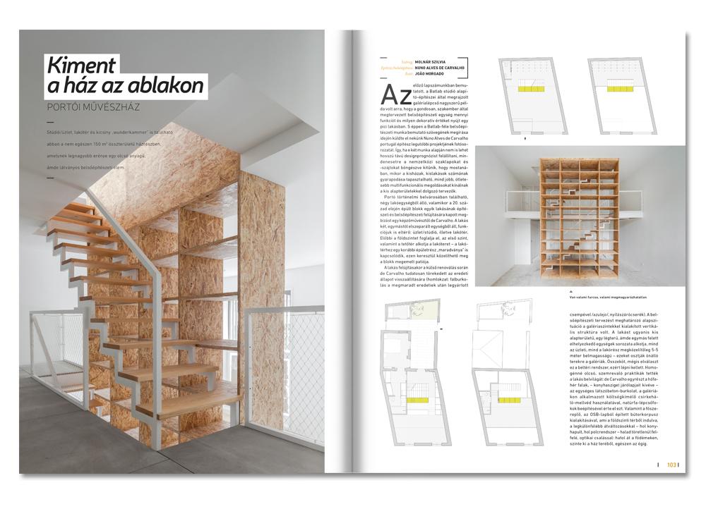 Az előző lapszámunkban bemutatott, a Batlab stúdió alapító-építészei által megrajzolt galérialépcső nagyszerű példa volt arra, hogy a gondosan, szakember által megtervezett belsőépítészeti egység mennyi funkciót és milyen dekoratív értéket nyújt egy pici lakásban. S éppen a Batlab-féle belsőépítészeti munka bemutató szövegének megírása idején küldte el nekünk Nuno Alves de Carvalho portugál építész legutóbbi projektjének fotósorozatát. Így, ha e két munka alapján nem is lehet hosszú távú designprognózist felállítani, mindenesetre a nemzetközi szaklapokat és -szájtokat böngészve kitűnik, hogy mostanában, mikor a kisházak, kislakások számának gyarapodása tapasztalható, mind jobb, ötletesebb multifunkcionális megoldásokat kínálnak a kis alapterületekkel dolgozó tervezők.