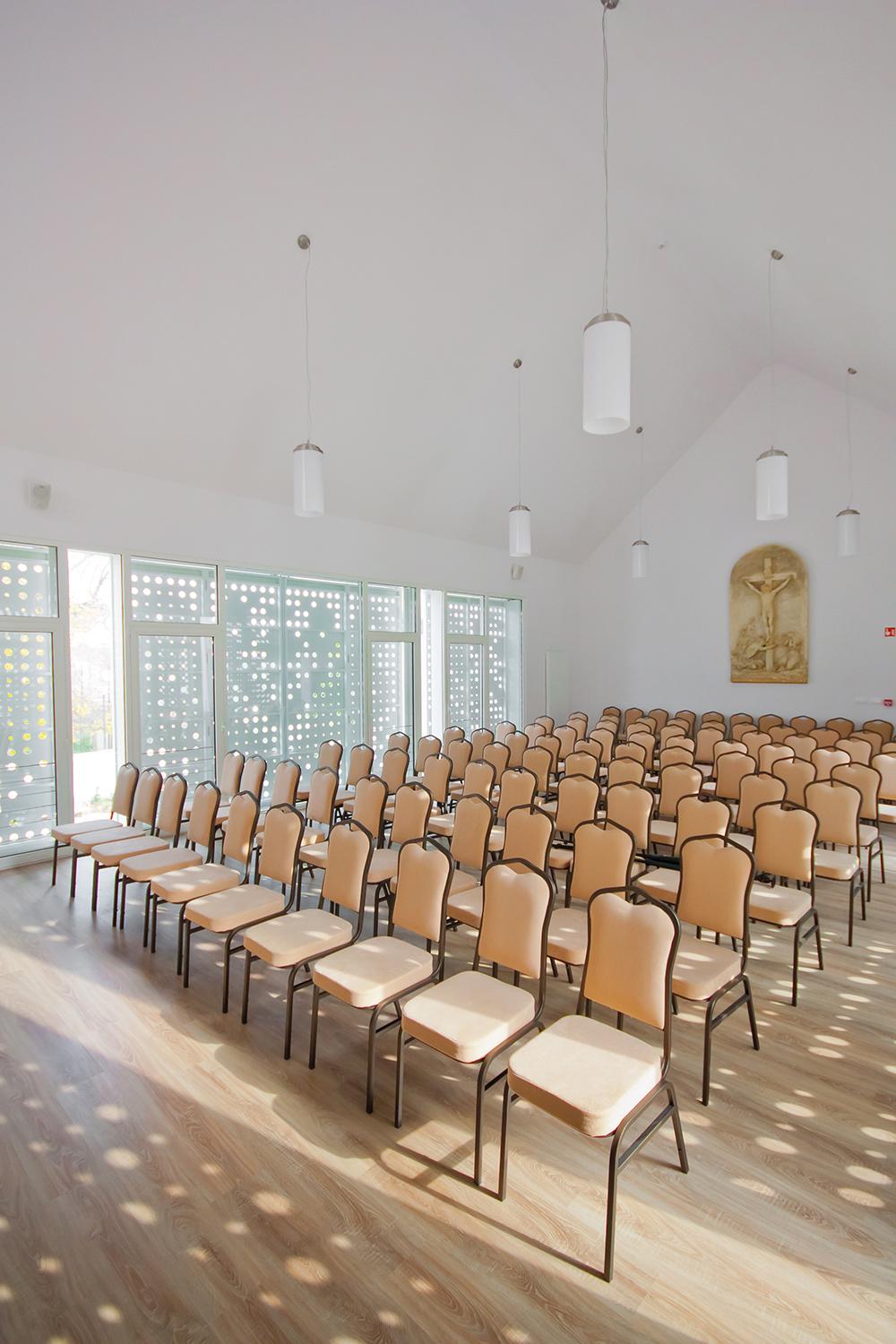 A friss és határozott tervezői szemlélettel végigvitt átalakítás nyomán egy korszerű, sokoldalúan használható közösségi ház, lelki otthon jött létre, amit szemmel láthatóan szeretnek a használók. Kis léptékű, de példamutató beavatkozás: új érték létrehozásával párosítva is meg lehet menteni az épített örökséget.